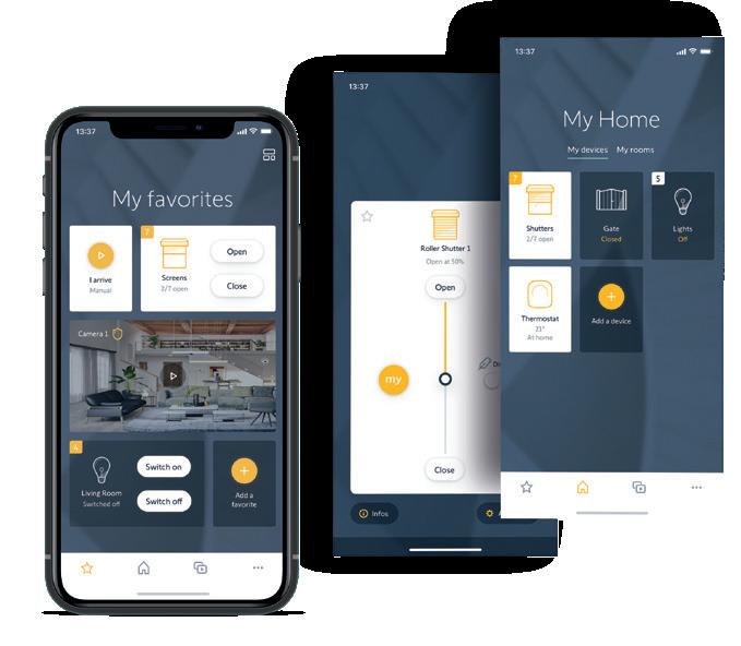 Easily create your daily scenes, control your connected equipment anytime from anywhere through your smartphone, voice assistant or TaHoma Box.