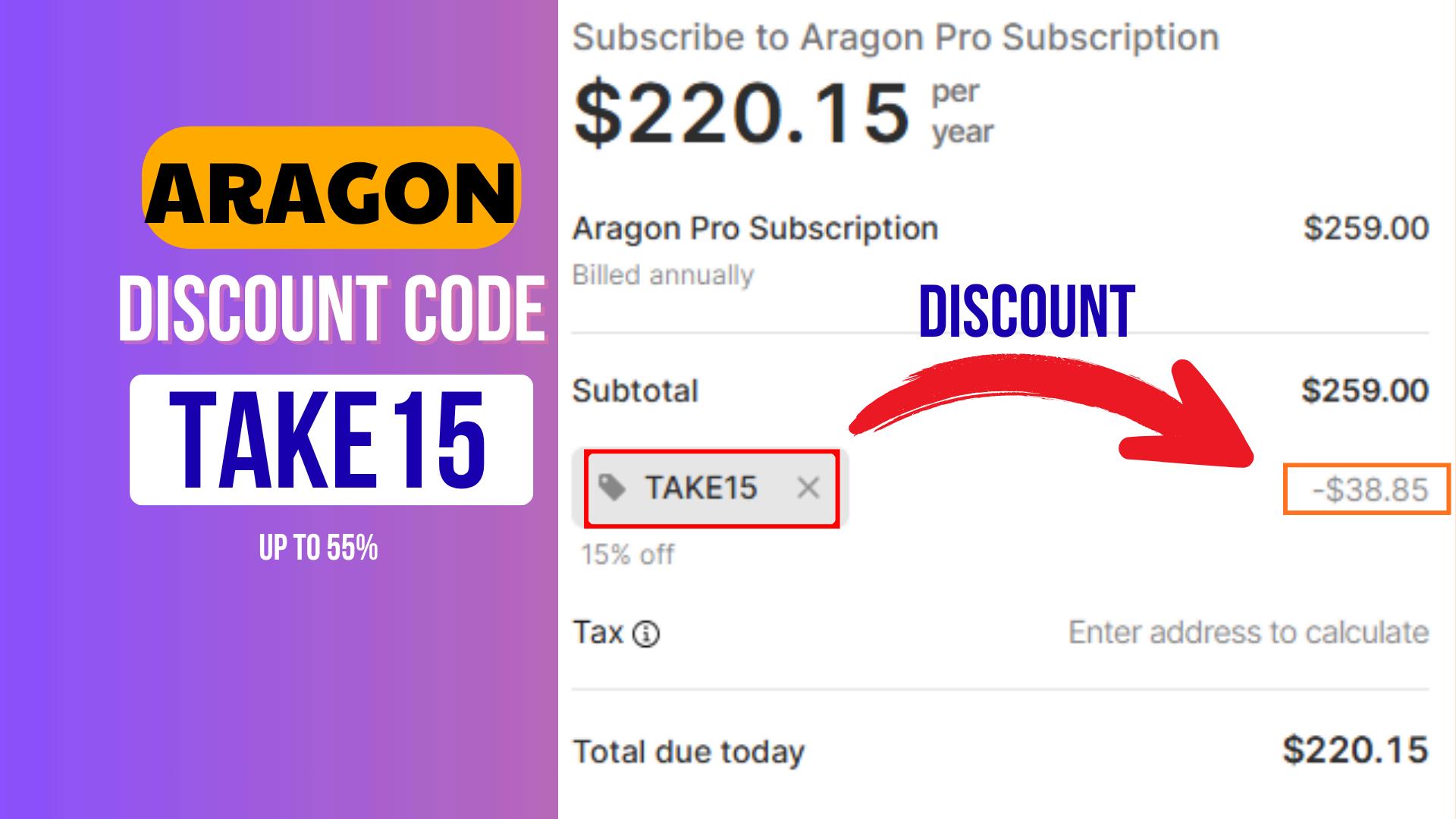 Aragon already offers tiered discounts for various subscription plans but when you enter the Aragon Discount Code: TAKE15, you’ll unlock extra savings on top of existing offers, bringing your total discount up to 55% off!
