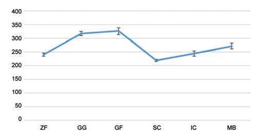 mização.Operfildemicrodureza Vickersfoiobtidousandoumacargade9,08N,sendoasindentações realizadasapartirdadivisãodas regiõesdajuntasoldadaconforme segue:zonafundida(ZF),regiãode granulaçãogrosseiradaZTA(GG), regiãodegranulaçãofinadaZTA (GF),regiãointercríticadaZTA (IC),regiãosubcríticadaZTA(SC) emetaldebase(MB).