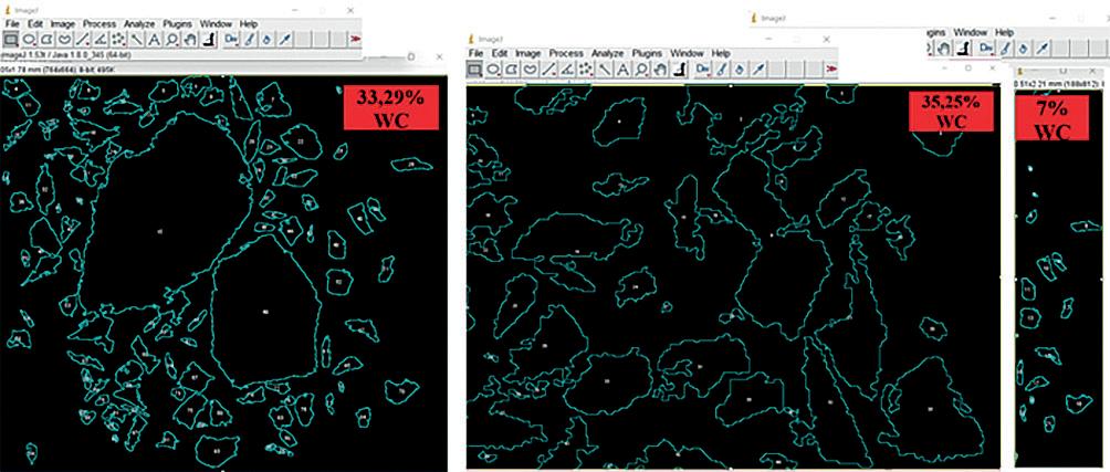 Fig. 7 – Regiões de análise (software) da quantidade de WC da amostra revestida por soldagem.
