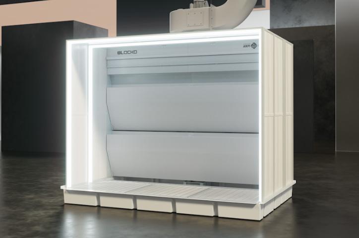 Duas delas são da linha Blocko, sendo uma por via úmida, que conta com sistema de tanque separado para manutenção; e uma por via seca. Também é recente o lançamento de uma cabine para pintura a pó, equipada com sistema de movimentação e opção de túnel de secagem, ideal para otimizar o fluxo de produção.