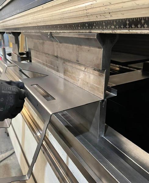 O suporte permite o manuseio sem esforço de sistemas de fixação de ferramentas de até 300 mm (XLTbend) e 400 mm (MEGAbend) para a produção de gabinetes ou caixas metálicas de grande altura, mesmo com chapas espessas.