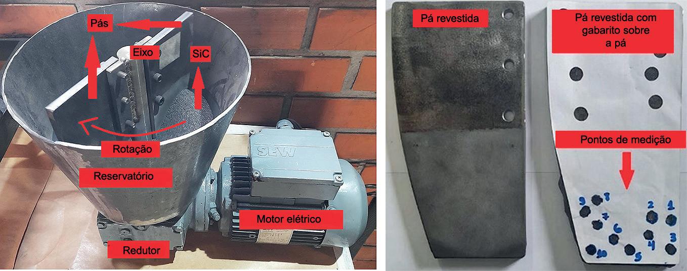 Constatou-se que o desgaste total do revestimento de uma das faces da pá soldada se daria ao final de 2.092,5 horas de ensaio, enquanto nesse mesmo tempo de ensaio a amostra revestida por HVOF apresentaria um desgaste de 0,14 mm, alcançando o seu desgaste total somente ao final de 7.857,1 horas. Ou seja, a vida útil dessa pá seria aproximadamente três vezes maior do que a da pá soldada. O desgaste maior foi observado na amostra soldada e esse comportamento pode ser associado à quantidade significativamente menor de WC, bem como à irregularidade na distribuição das partículas duras, conforme foi identificado na microestrutura e, consequentemente, à menor microdureza medida na amostra, sendo, nesse caso, o maior desgaste. O resultado é coerente com dados apresentados na literatura (4)