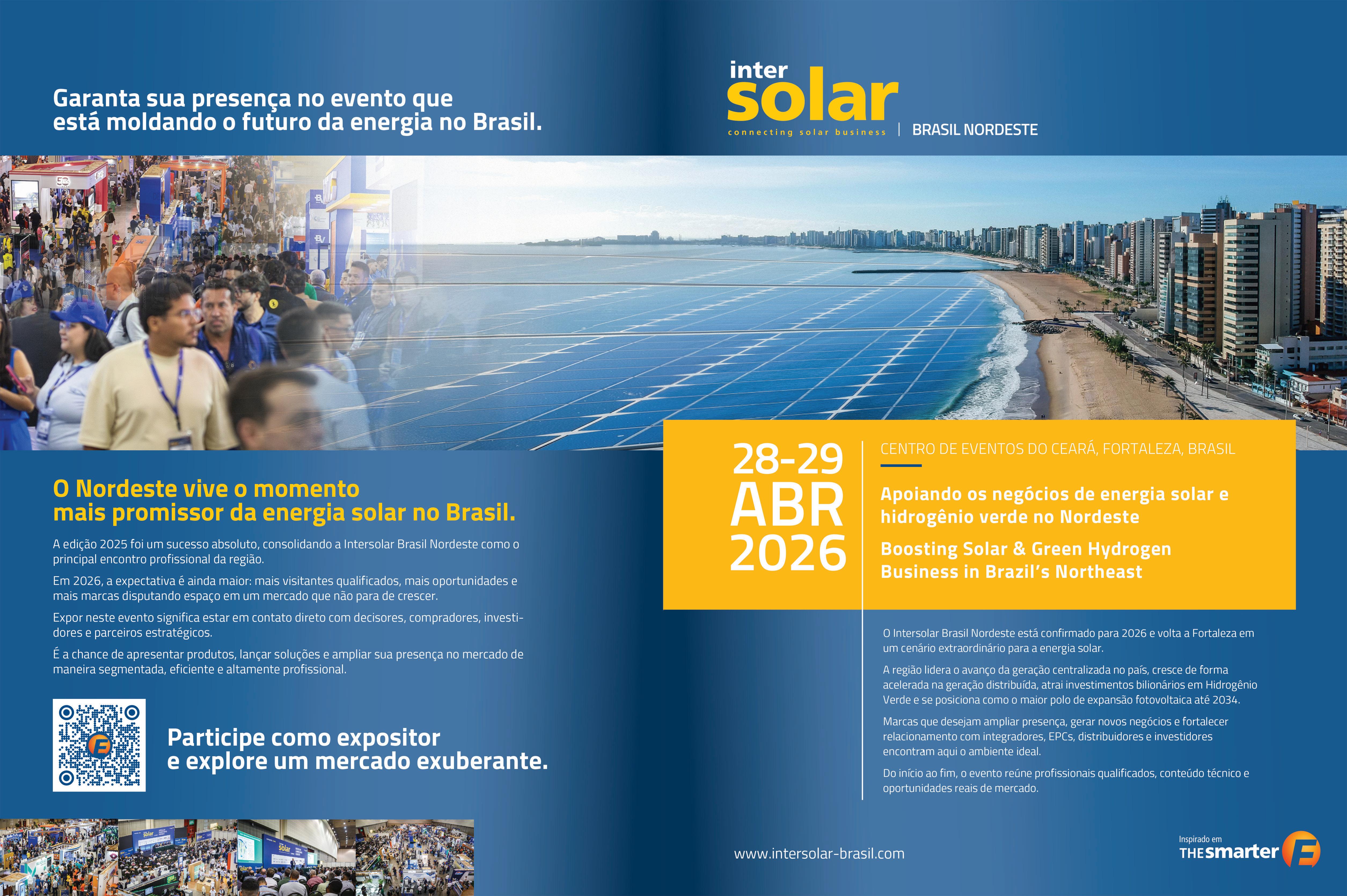 Intersolar Brasil Nordeste – O Intersolar Brasil Nordeste acontecerá no Centro de Eventos do Ceará, em Fortaleza, em 28 e 29 de abril. Constituído de congresso e feira, o evento enfocará energia solar, armazenamento de energia, H2V e outros assuntos. Realização: Solar Promotion, FMMI e Aranda Eventos. Informações: https://www.inter solar-summit-brasil.com/nordeste.