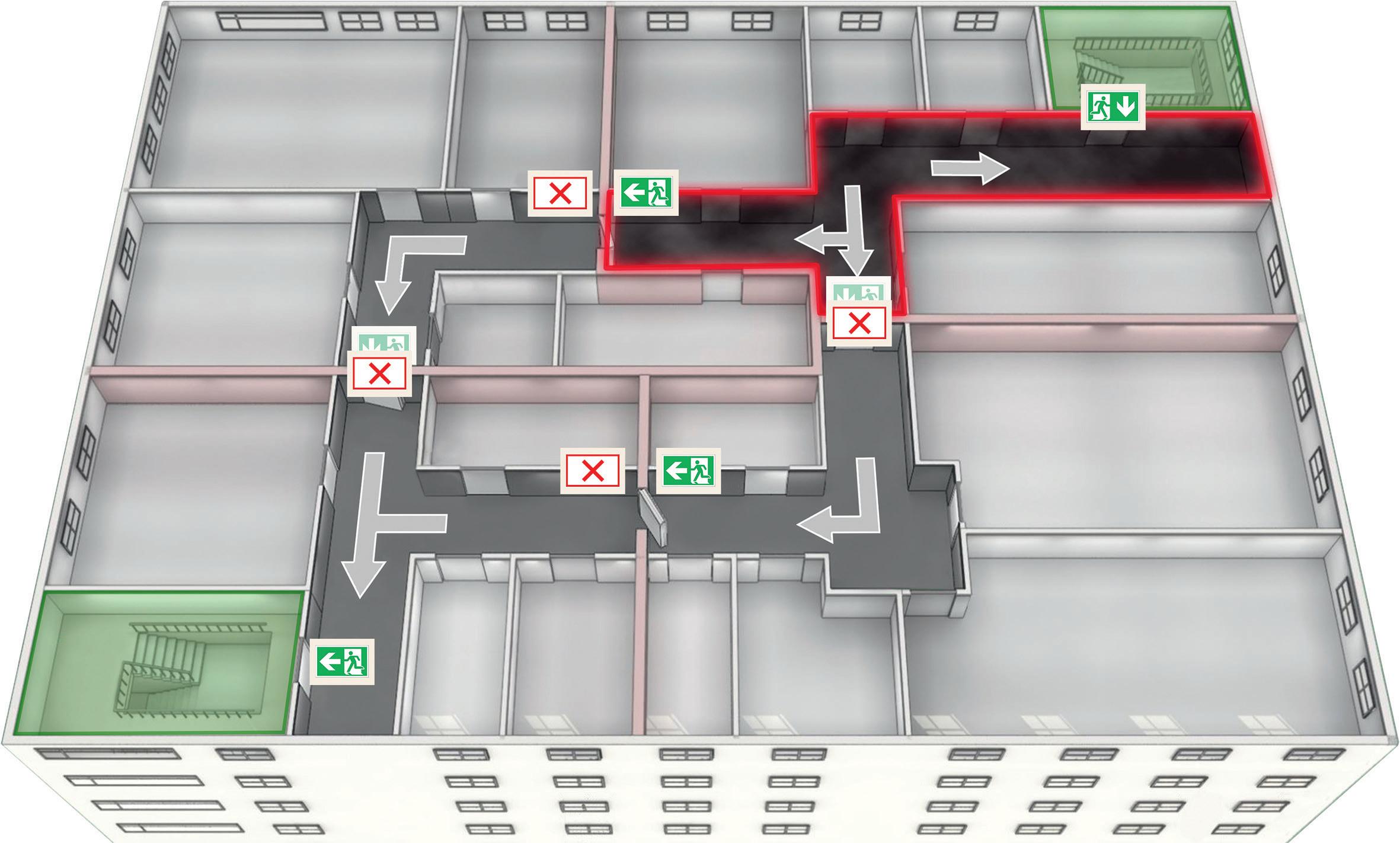 Sistemas dinâmicos e adaptativos de sinalização de rotas de fuga ampliam a segurança. O artigo aborda os benefícios em novos projetos e reformas de edificações, destaca a acessibilidade em emergências e apresenta requisitos da norma DIN 14036.