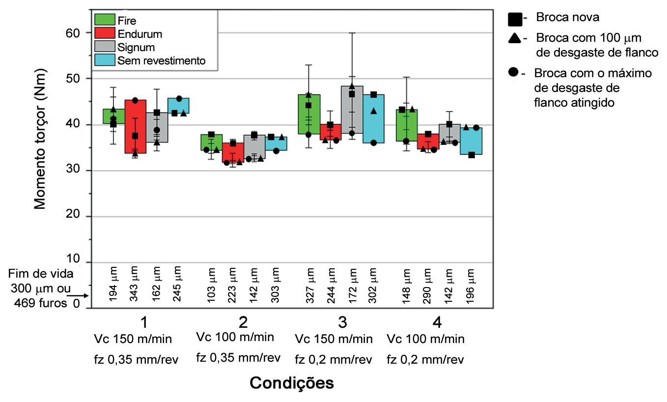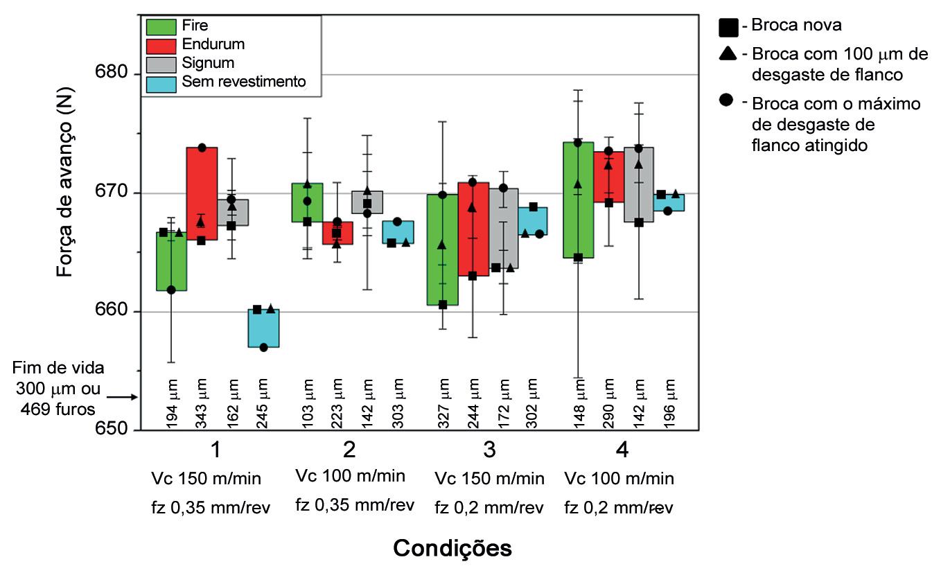 Força de avanço e momento torçor na furação de CGI 500 com brocas revestidas e sem revestimento