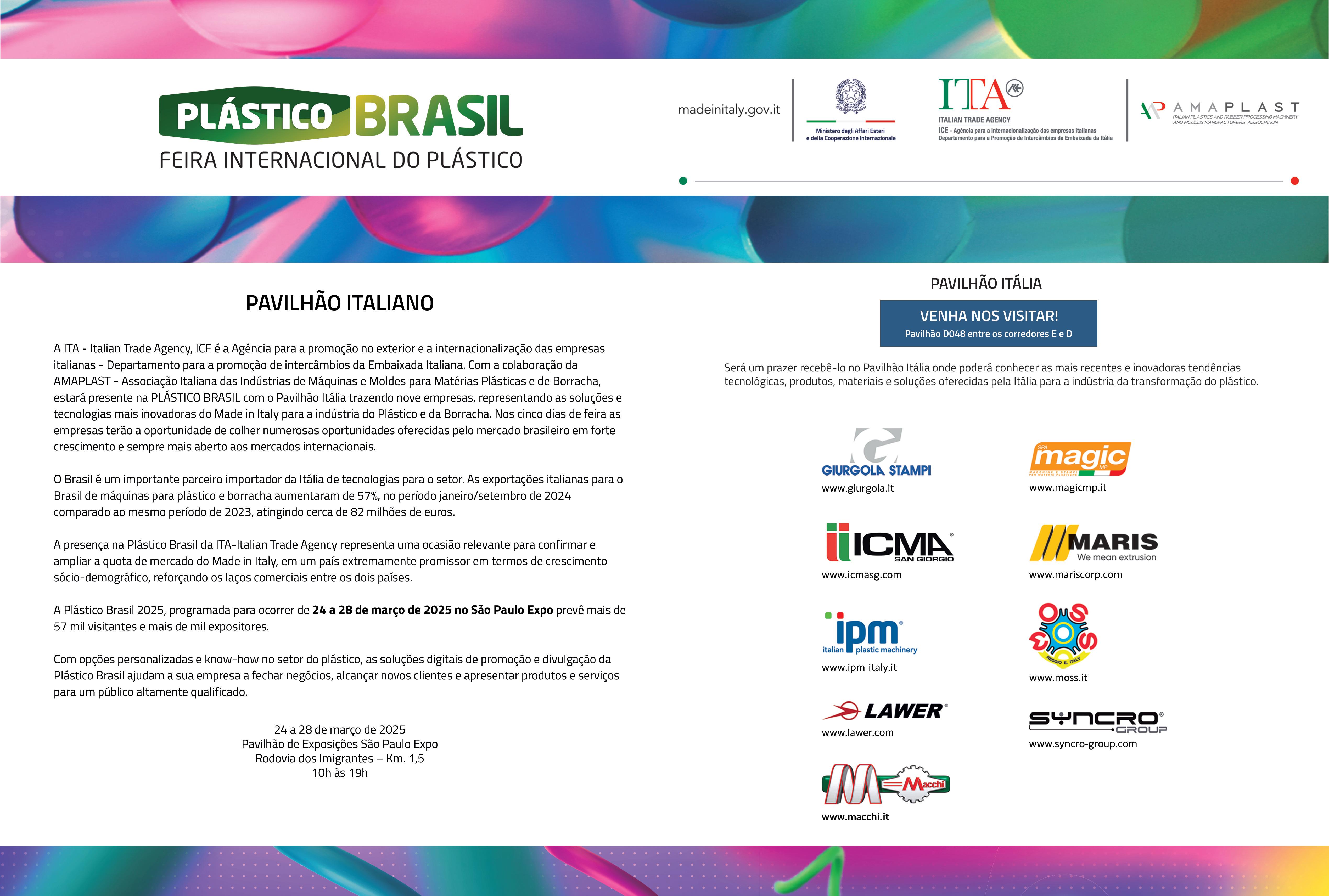 Obs.: Os dados constantes deste guia foram fornecidos pelas próprias empresas que dele participam, de um total de 77 empresas pesquisadas. Fonte: Revista Plástico Industrial, fevereiro/março de 2025. Este e muitos outros Guias PI estão disponíveis on-line, para consulta. Acesse www.arandanet.com.br/revista/pi e confira. Também é possível incluir a sua empresa na versão on-line de todos estes guias.