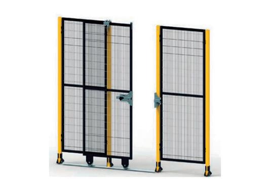 A T T Techno Safe echno Safe echno Safe echno Safe Safe (Sorocaba, SP) f o r n e c e p o r t a s e g r a d e s d e p r o t e ç ã o q u e p o d e m s e r usadas para impedir o acesso d e pessoas a áreas ocupadas por máquinas, enquanto elas estão em operação, tais como i n j e t o r a s e e x t r u s o r a s , p o r exemplo. São comercializadas p o r t a s d e l â m i n a ú n i c a e m versões com abertura de 1.500 mm para a direita e esquerda, as q u a i s t ê m p a i n e l f e i t o d e alumínio e malha com dimen-