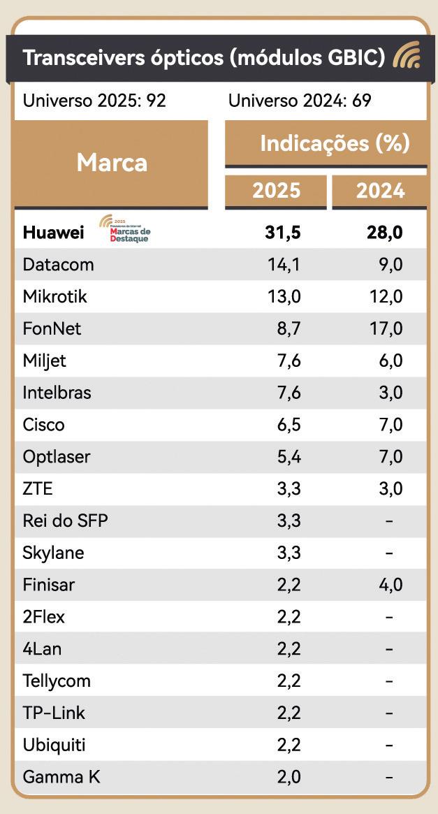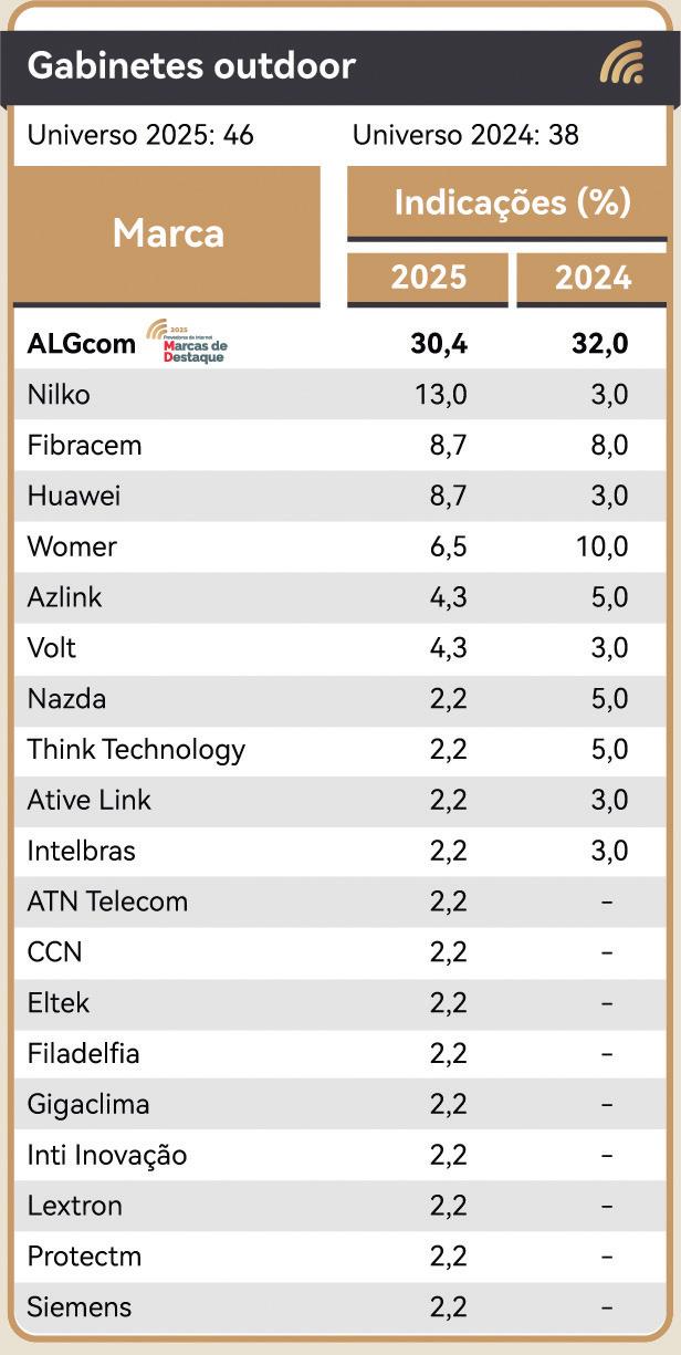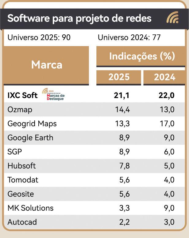 Com um universo de 163 provedores pesquisados, os resultados desta edição mostram tendências consistentes em 29 categorias de produtos para a infraestrutura de redes e operação dos provedores. Fornecedores de antenas, cabos, switches, rádios digitais, software, retificadores e demais produtos e serviços estratégicos continuam disputando espaço, mas algumas marcas despontam com firmeza — reflexo da busca por padronização, confiabilidade técnica e suporte regional. Para as empresas que implantam ou expandem redes, o levantamento da RTI funciona como bússola, orientando decisões que impactam diretamente o desempenho, disponibilidade e custo/benefício.