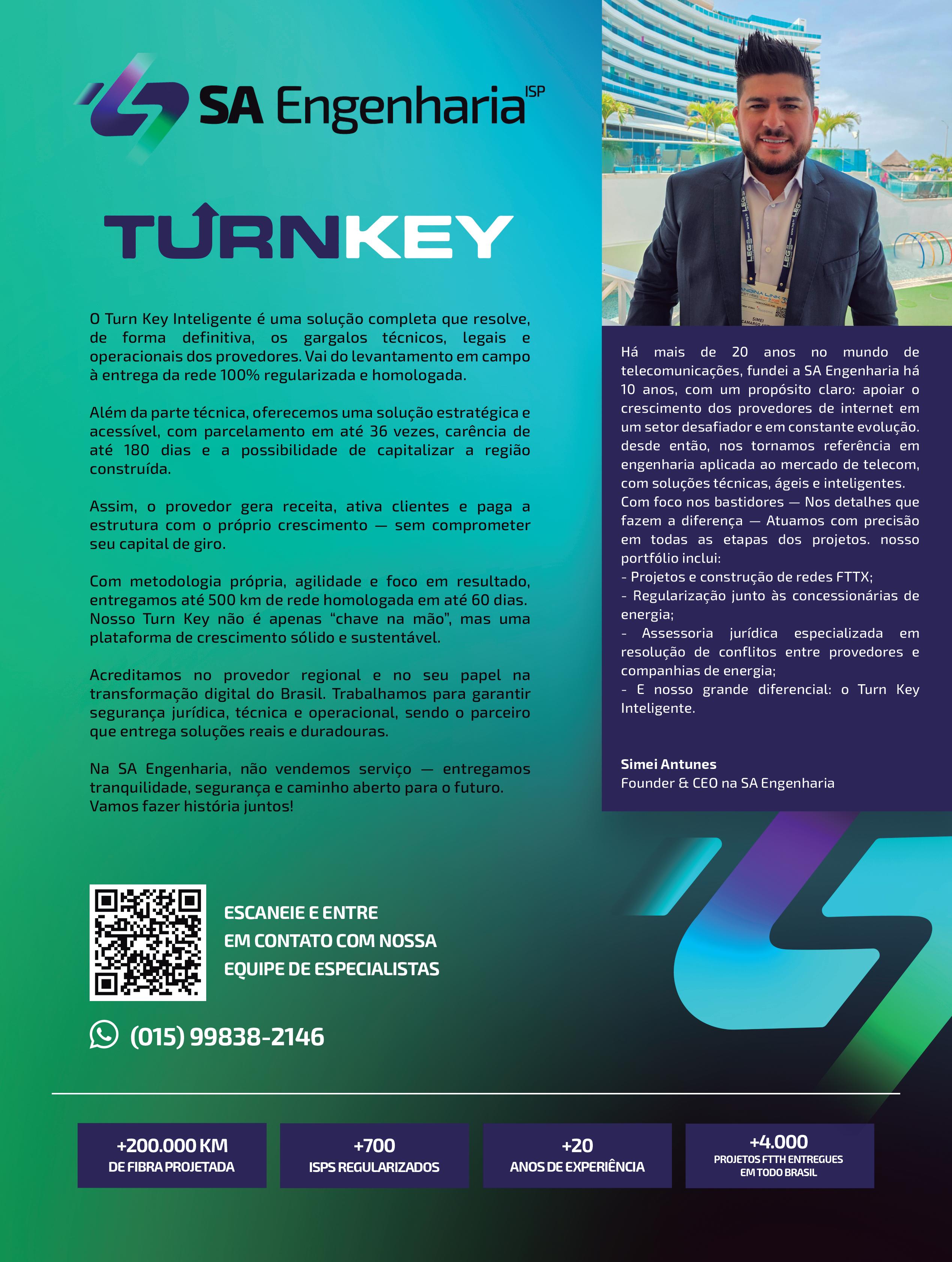 Para encerrar, estamos na infância da aplicação de IA – Inteligência Artificial em telecom, o que eu chamaria de IA “no core”. Os dados são massivos, desde a análise de comportamento de aplicações na casa do usuário até a telemetria profunda dos elementos de rede, passando por toda a área de cibersegurança. A combinação do uso de IA para análise desses dados e o uso dos resultados como entrada para os mecanismos de self-healing são ferramentas muito poderosas, mas dependem de uma rede construída para ser automatizada. É um investimento que deveria ser prioritário e urgente para qualquer operadora de médio porte.