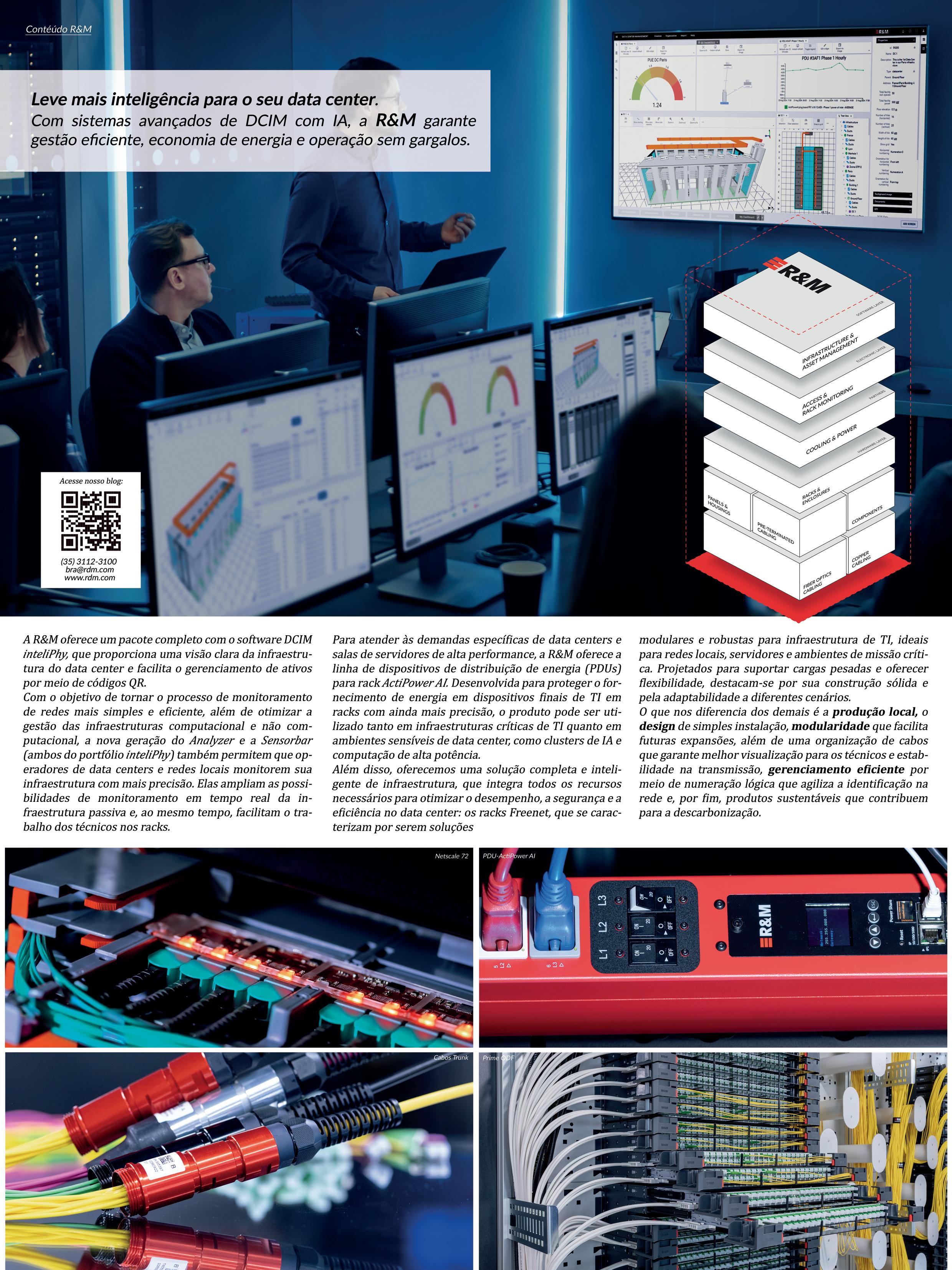 A R&M disponibilizou a sexta geração do pacote de software inteliPhy . Com a ferramenta, o usuário pode planejar tridimensionalmente a infraestrutura de um espaço cinza e agora também os confinamentos em data centers de colocation. Componentes como racks, patch panels, gabinetes flexíveis, dutos de cabos, cabos trunk e equipamentos ativos são adicionados a partir da biblioteca de