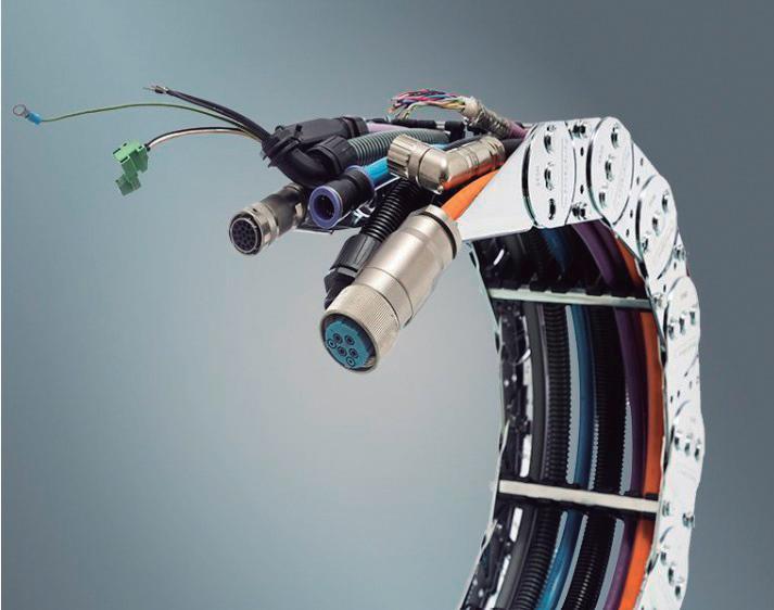que permitem larguras milimetricamente ajustáveis, a solução tem altura externa do elo de 44 mm e raio de curvatura de 75 a 200 mm. Site: www.portacabos.com.br.