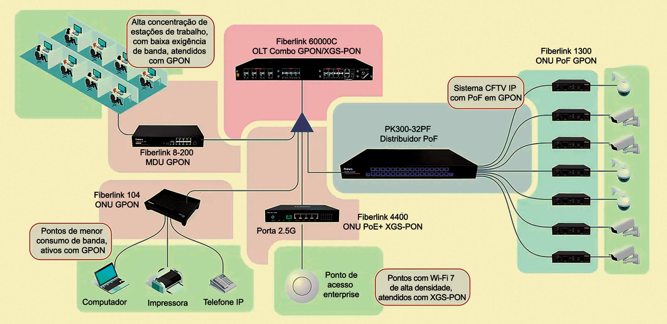 ainda exige alimentação elétrica nos pontos finais para operação de ONTsOptical Network Terminals. Com o PoF, conseguimos levar também a energia pela própria fibra, simplificando completamente a infraestrutura”, afirma.