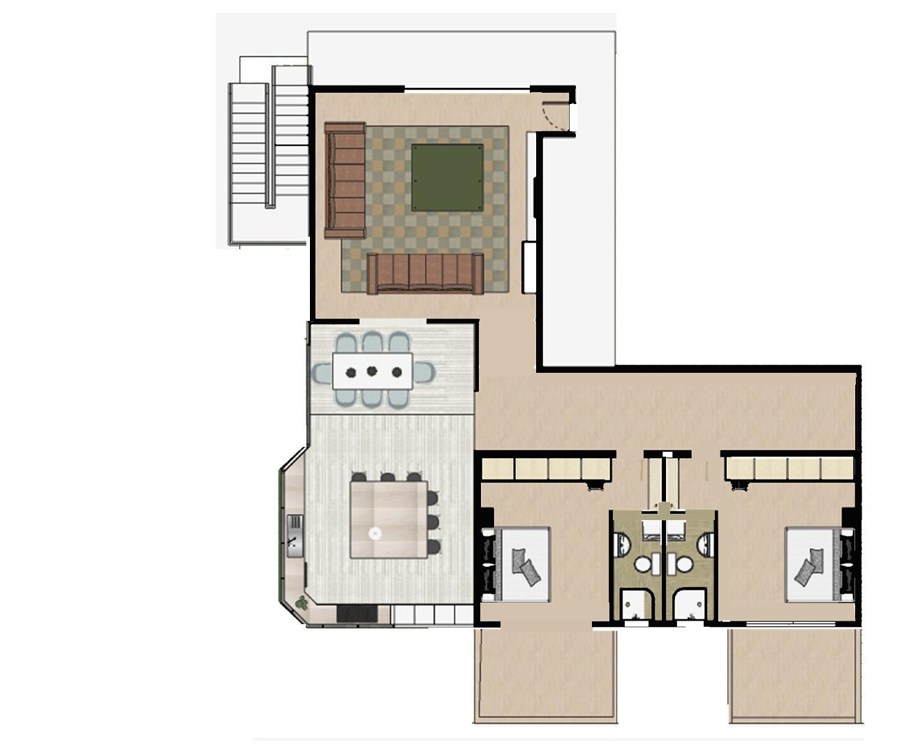 The site is steeper towards the seaward side. There are 3 levels with the height difference of 2mts. . The formation of the cluster is inspired from square cut into four parts.