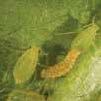 DESCRIPTION: These mini-wasps (1/8”) are vigorous iers and will aggressively seek out aphid populations, no matter how small. Once they nd the aphids, they feed on the honeydew produced by the aphids and lay their eggs inside the aphid nymphs. As the larvae feed on the nymphs from the inside, the nymph turns into a mummy. The parasites are shipped to you this stage; simply place them where the infestation is. Once mature, the adult wasp will chew its way out of the mummy and begin its own search for aphids.