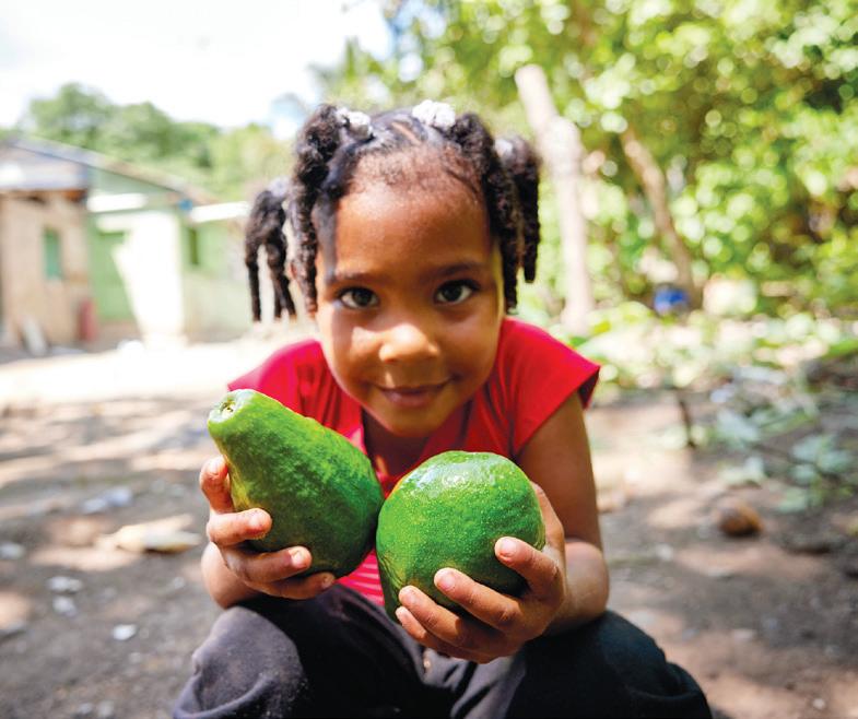 Top: Cesar (right) shows Lachel Bradley-Williams the fruit his trees dropped, which helps feed his family and community in the Dominican Republic.