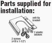 Anti-tip brackets are metal devices designed to prevent freestanding ranges from tipping. They are normally attached to a rear leg of the range or screwed into the wall behind the range, and are included in all installation kits. A unit that is not equipped with these devices may tip over if enough weight is applied to its open door, such as that from a large Thanksgiving turkey, or even a small child. A falling range can crush, scald, or burn anyone caught beneath.
