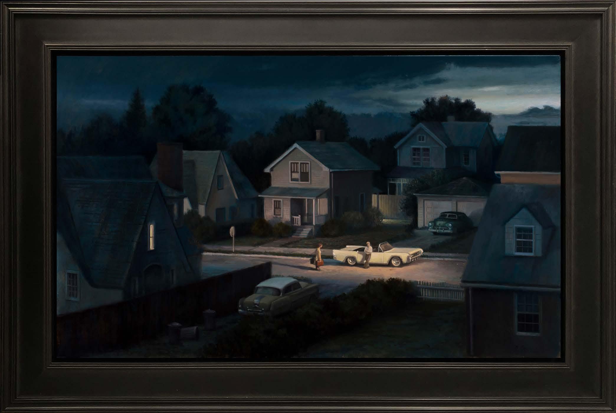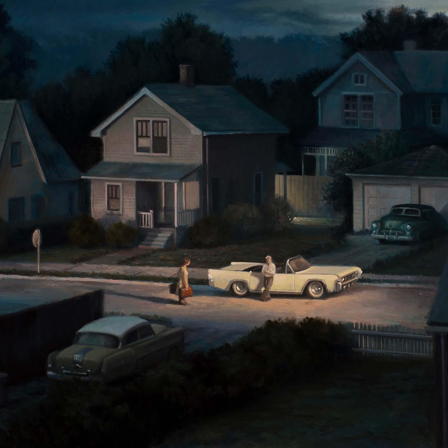 Born in Sevilla, Spain in 1976, Alberto Ortega creates oil paintings made after miniature sets that he builds as references. The small-scale sets enable him to recreate suburban scenes using details that recall the 1950s. Since he’s able to control the angle and point of view, the lighting, the location of every element, much like a film director would do, his works have a strong cinematic feel.