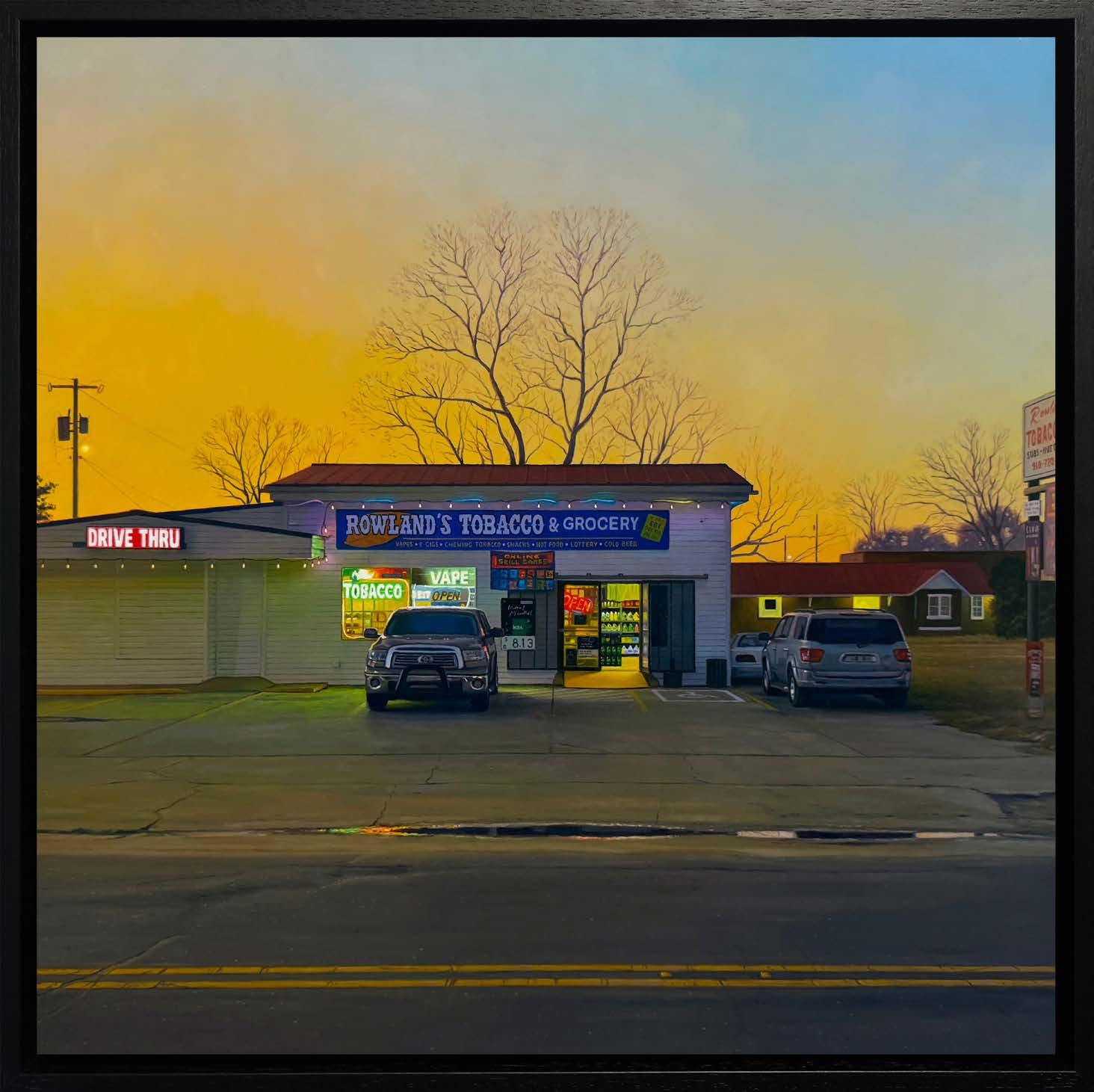 Recently his paintings have turned more complex, with dusk and night scenes, streetlights on secluded homes. The visual backdrop has allowed a subtle narrative of mystery and intrigue. “Landscapes at this hour are like ghosts that are unseen during the day, only to be revealed by the strange and myriad ways the night time glows,” explains Cornell.