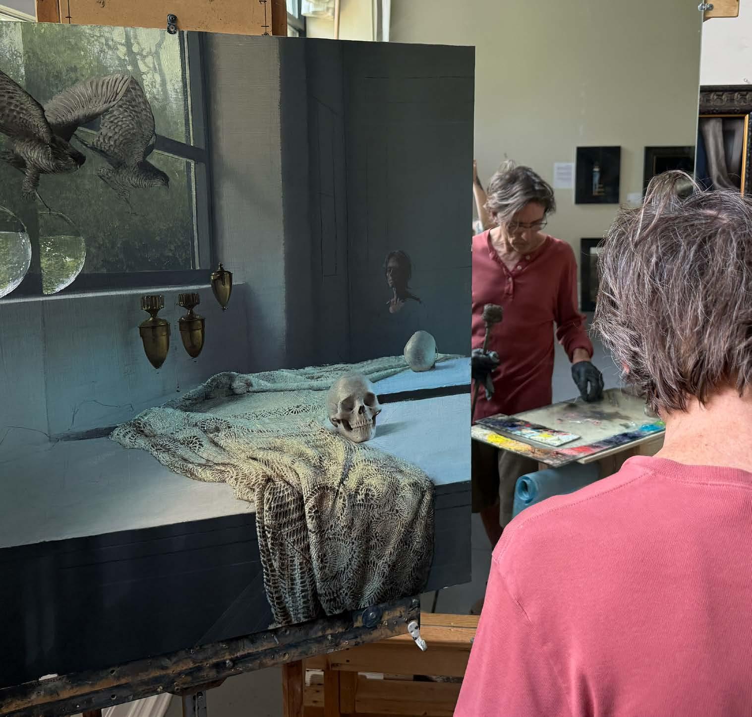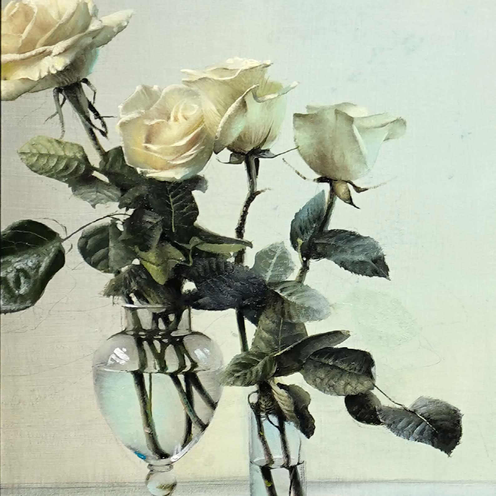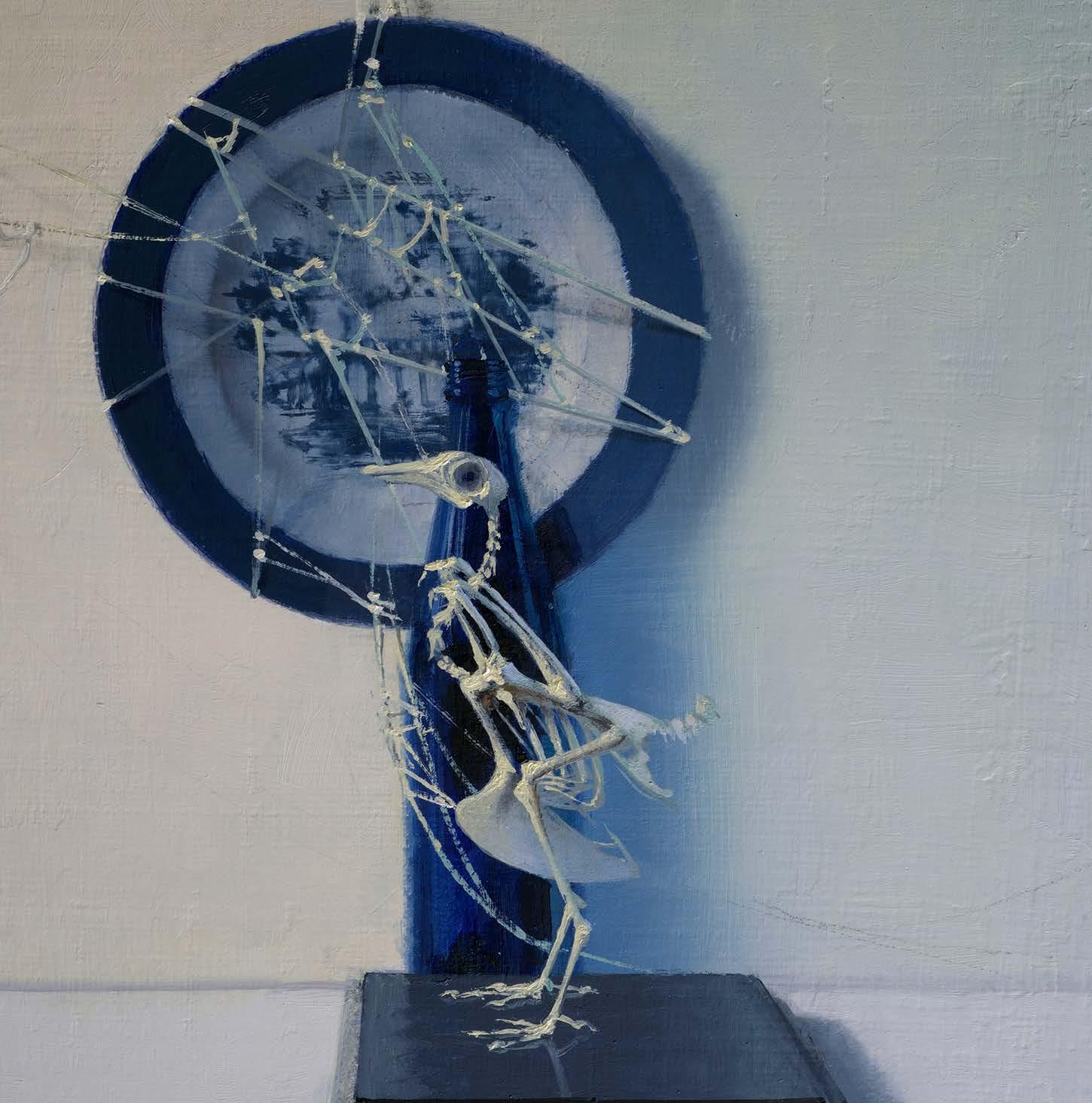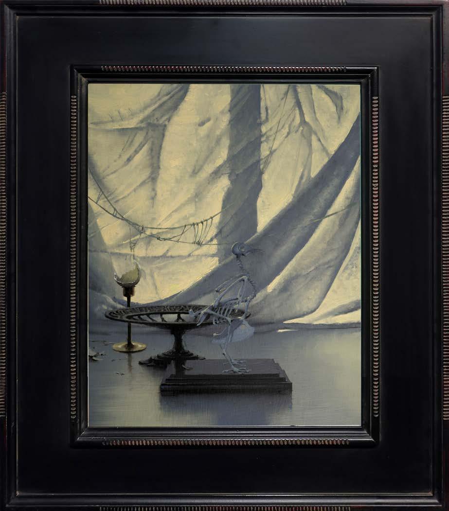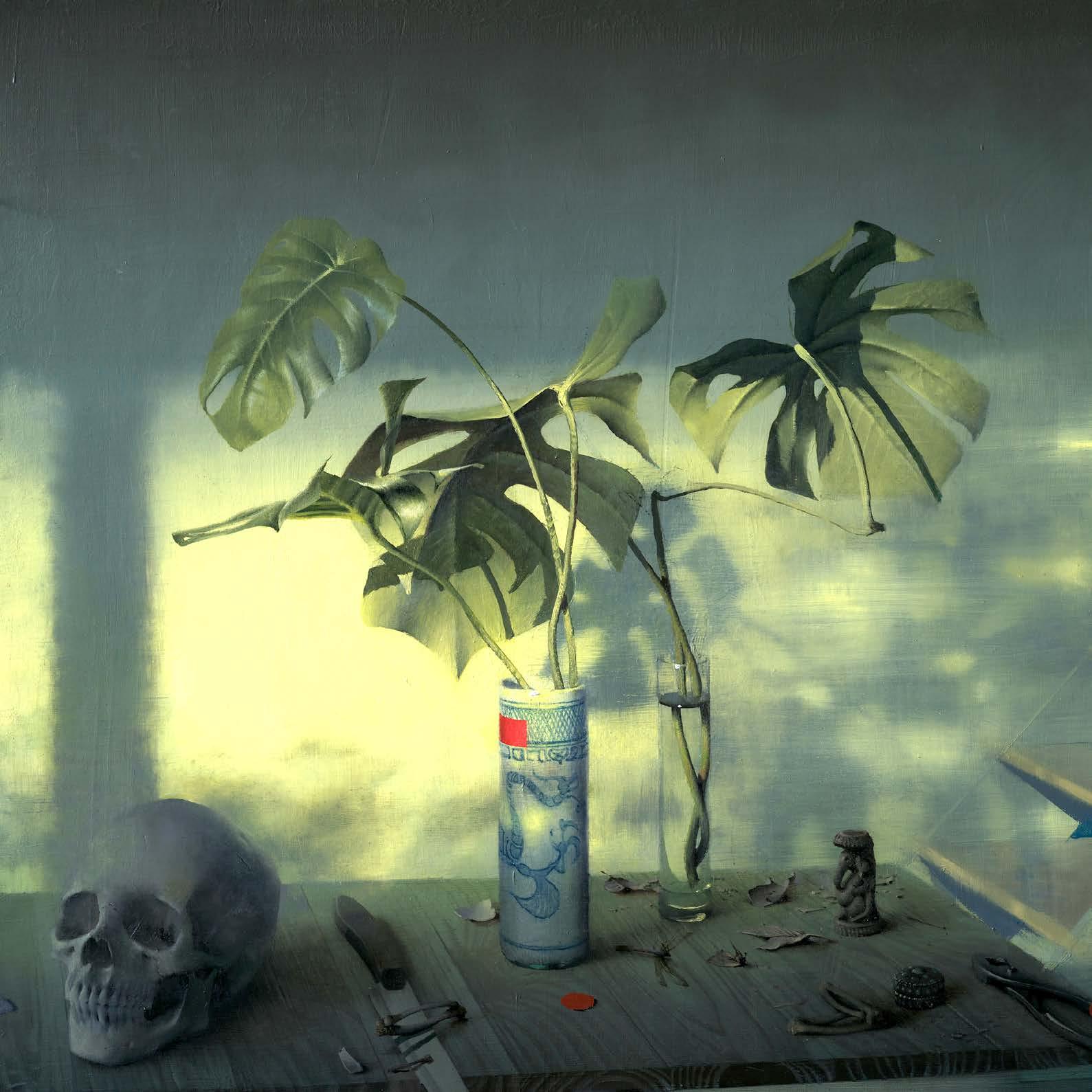 In “What Remains,” Daniel Sprick returns to many of the objects and motifs that have appeared throughout his work for decades; skulls, vessels, flowers, tools, and plants. These familiar forms appear alongside fragile remnants such as broken eggshells, bones, and wilted petals. Together they quietly echo the long tradition of vanitas painting, where objects serve as reflections on time, mortality, and renewal. Some of the objects depicted have accompanied the artist from studio to studio for many years, while others appear only briefly before fading away.