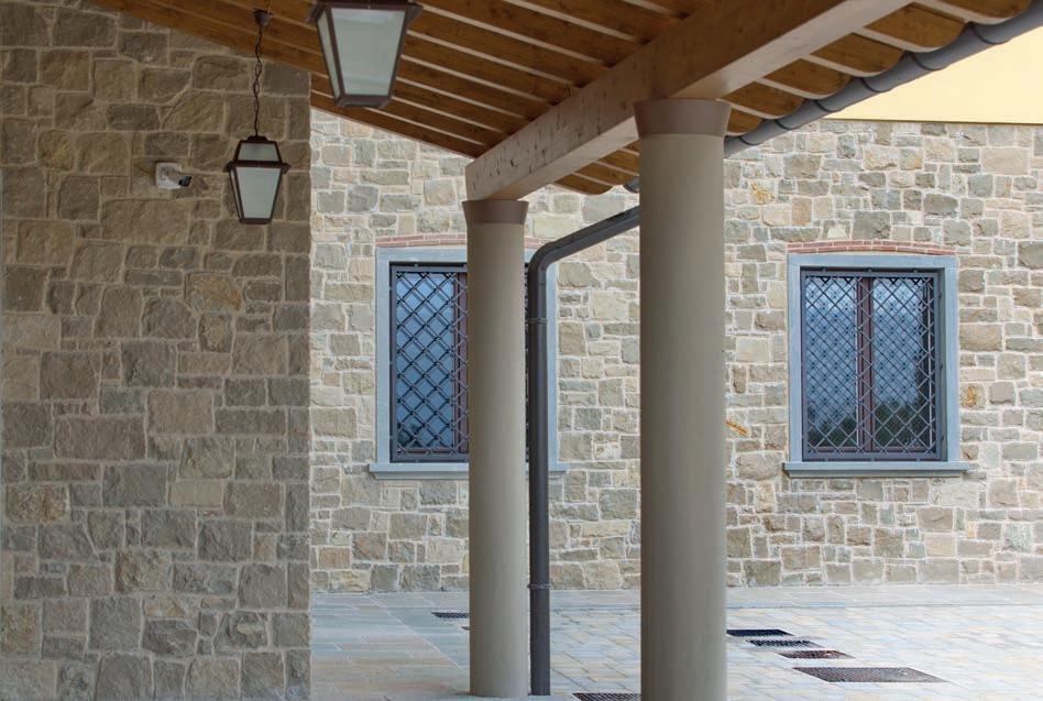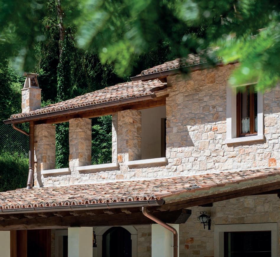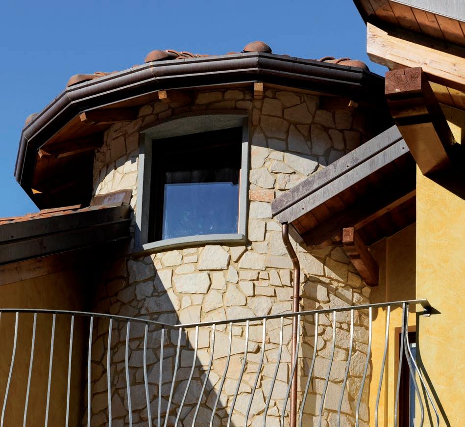 • È indispensabile evitare infiltrazioni d’acqua piovana tra il rivestimento ed il muro di supporto. Pertanto bisogna sempre prevedere una copertura mediante tetti o scossaline, faldali o lastre coprimuro.
