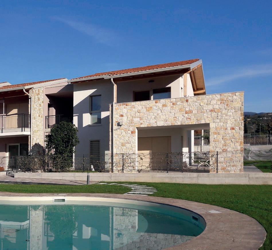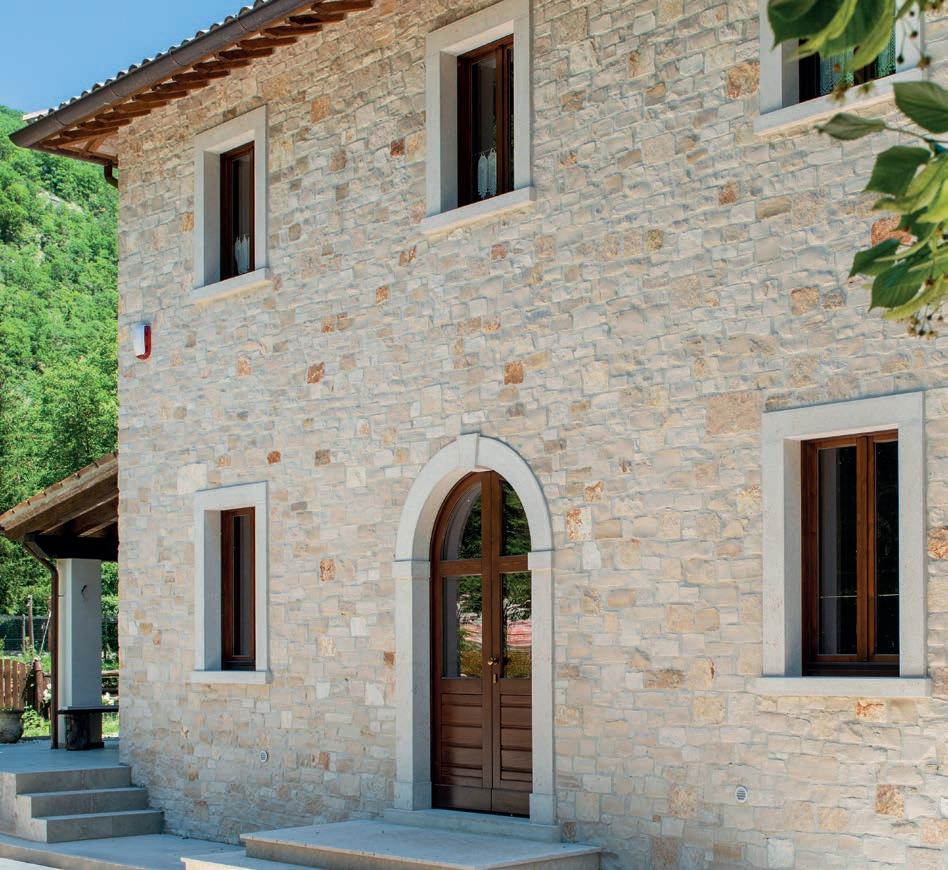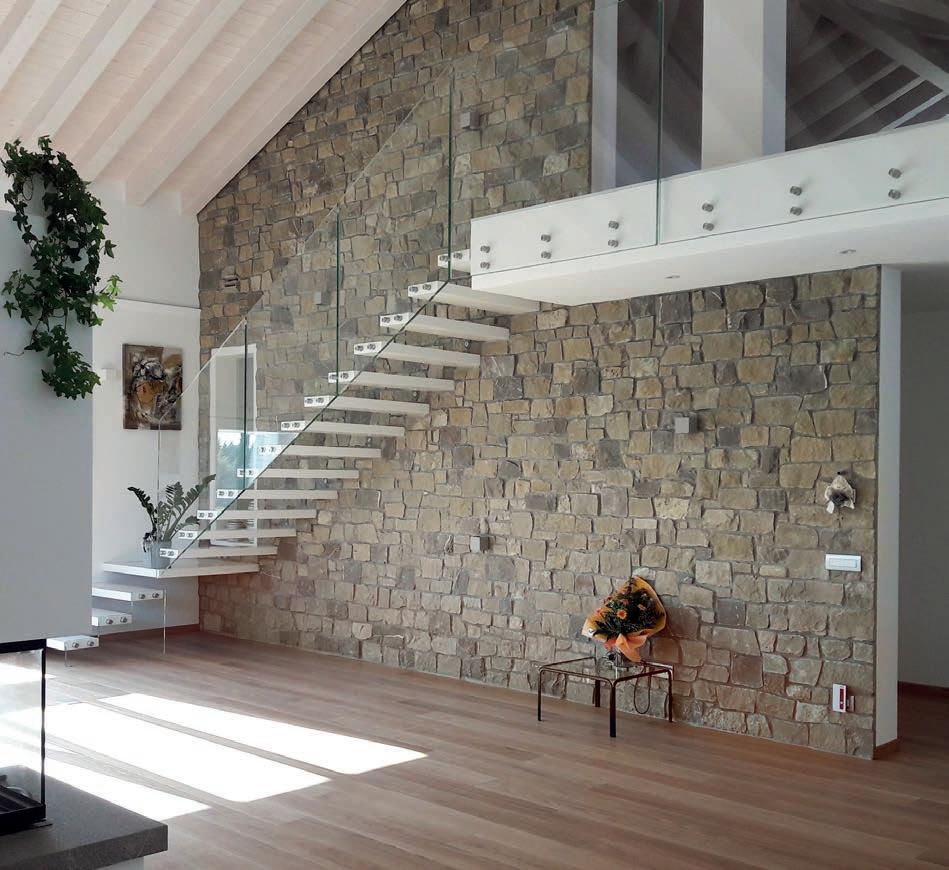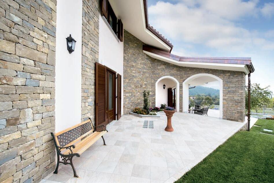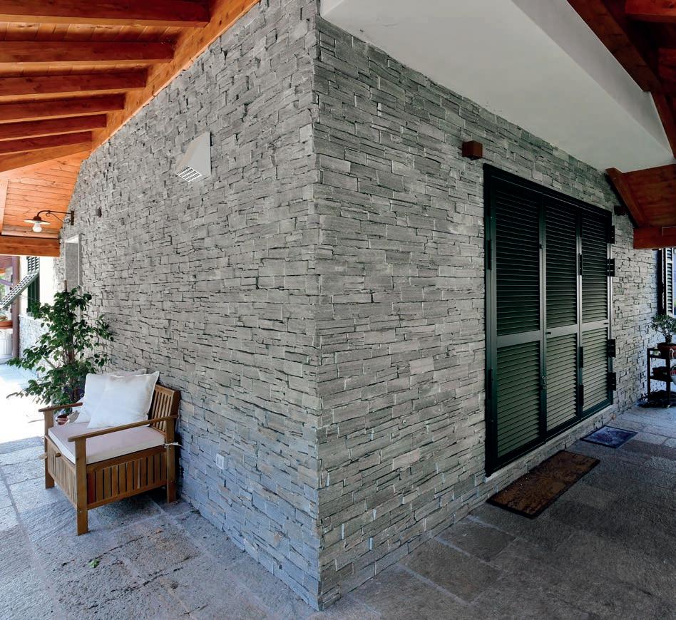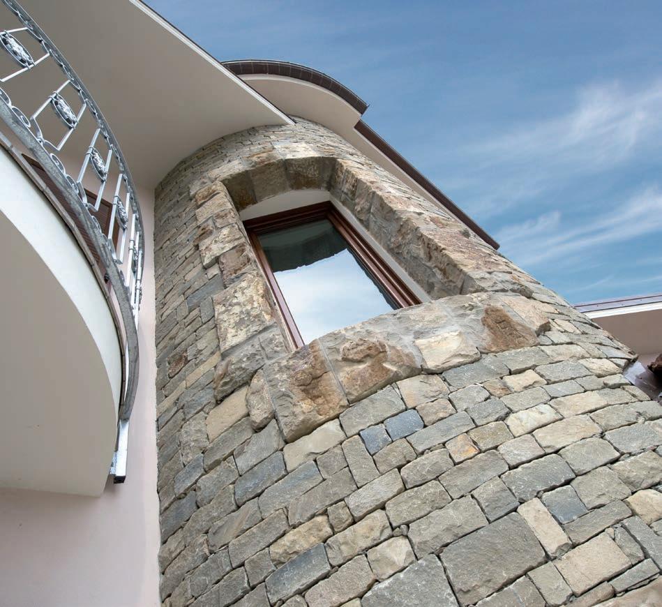 La vera pietra naturale è un materiale formatosi nel corso di millenni e per questo destinato a durare per sempre. Abili maestri artigiani, per mezzo di nuove tecnologie, tagliano la pietra ad uno spessore di 2 o 3 centimetri, ottenendo un lato a spacco naturale ed un lato perfettamente piano, ideale per una posa a colla rapida e precisa, riducendo inoltre sia il peso del prodotto sia lo spazio necessario per l’applicazione. I diversi tagli permettono di disporre le pietre o con una piacevole casualità, il metodo detto “a posa incerta”, o in modo più regolare, il metodo detto “a corso”. Tutte le tipologie di pietra possono essere applicate con la fuga o a secco.