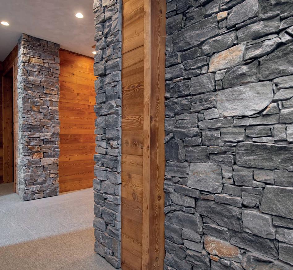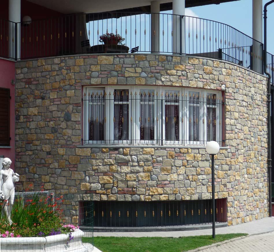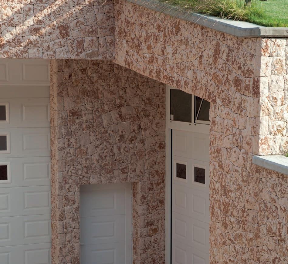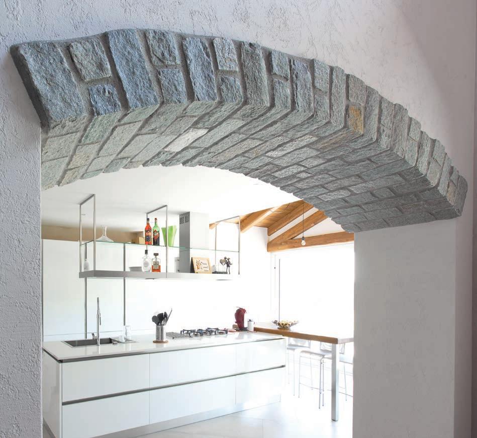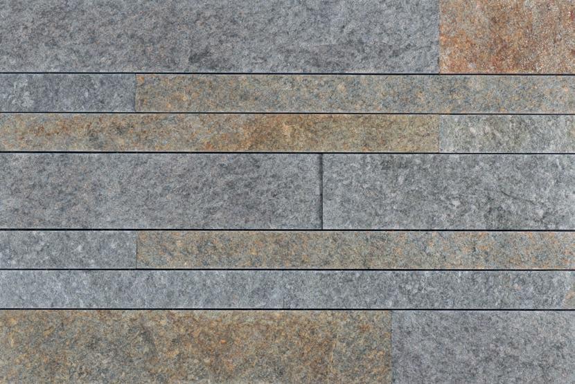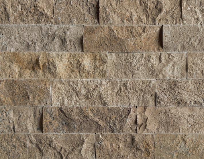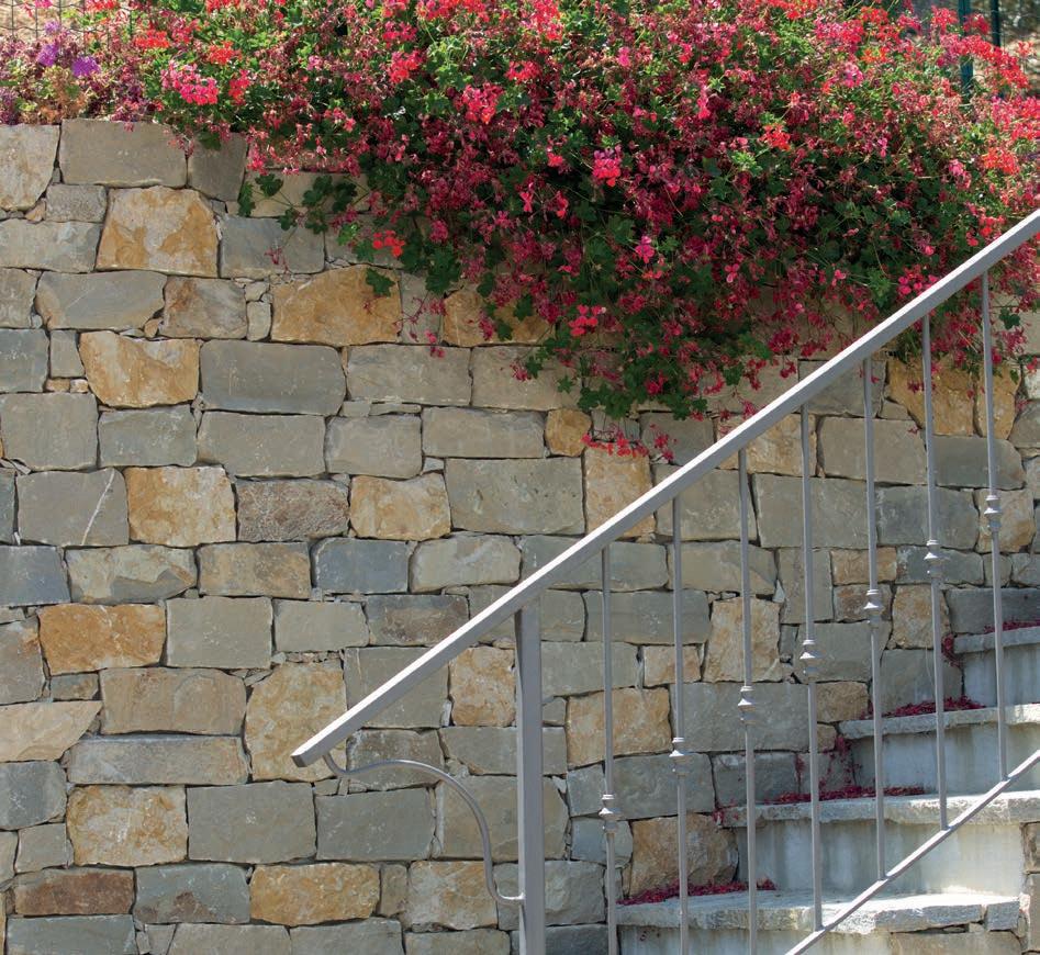 Natural stone was created over thousands of years and therefore it is destined to last forever. Using modern technology, skilful master craftsmen cut the stone blocks into pieces that are 2 or 3 centimetres thick. This way they obtain on one hand the split face and on the other a perfectly flat side, ideal for a quick and precise gluing. Furthermore, the stone weighs less and a smaller space is required to install it. The stones can be placed in the pleasant so-called “random mix” pattern because they come in different shapes and sizes. They can also be laid in a more regular way the so-called “stretcher” pattern. The various kinds of stone can be laid dry or with joints.
