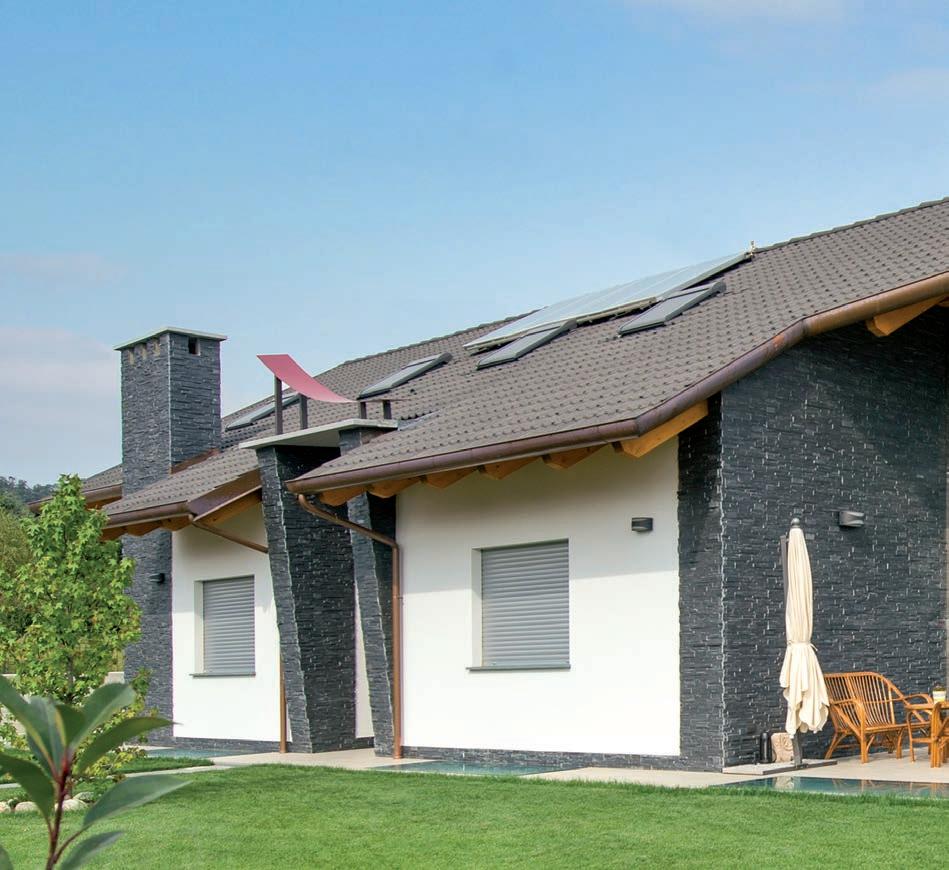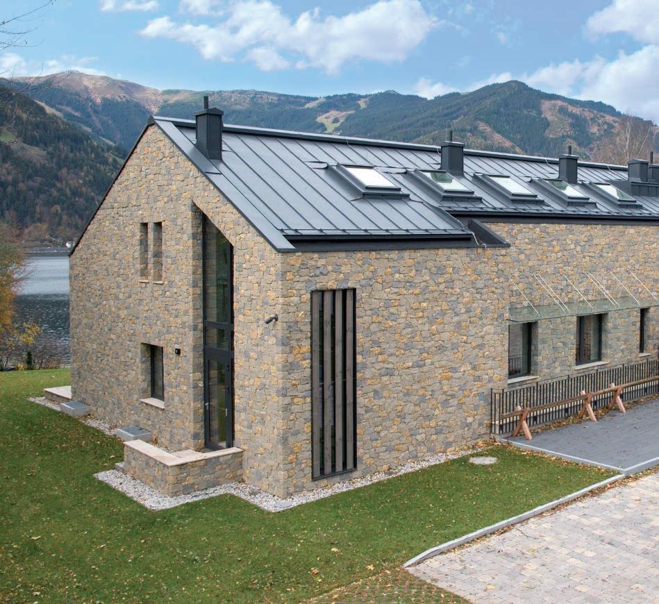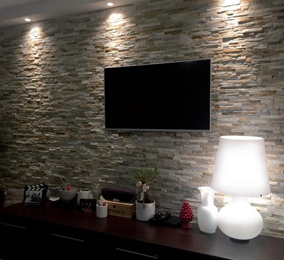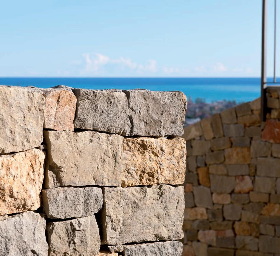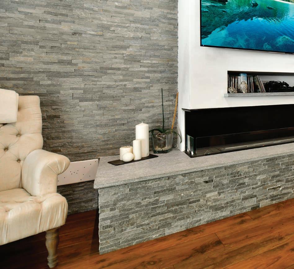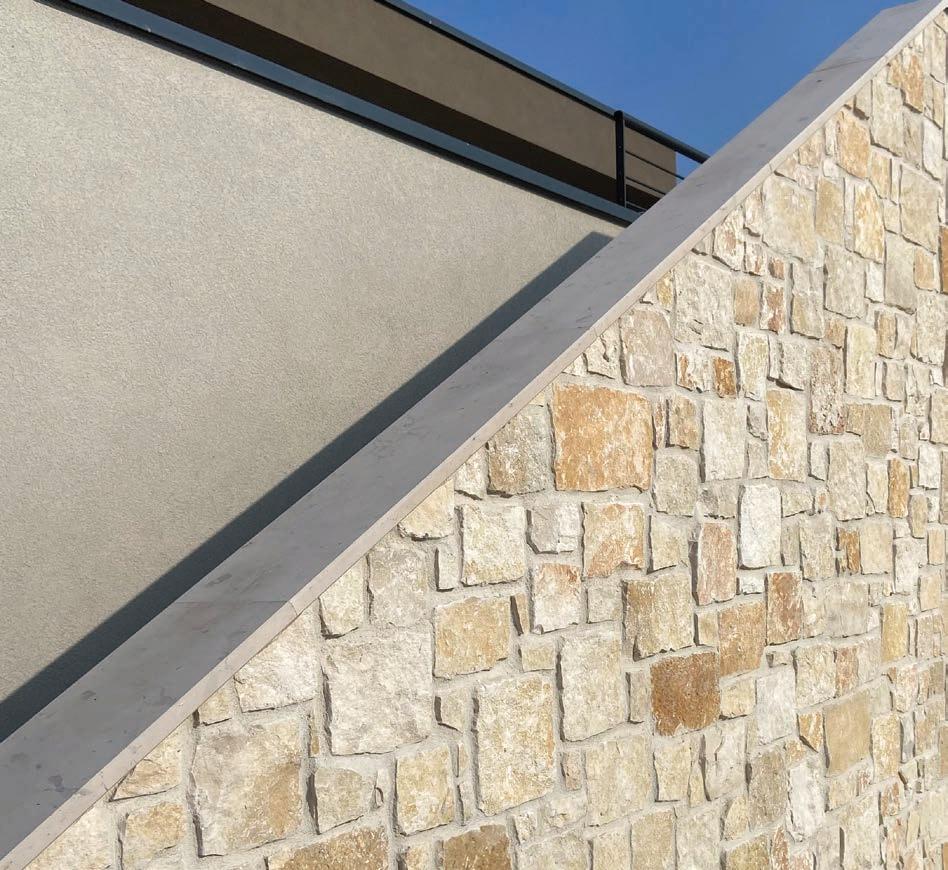 Natural stone was created over thousands of years and therefore it is destined to last forever. Using modern technology, skilful master craftsmen cut the stone blocks into pieces that are 2 or 3 centimetres thick. This way they obtain on one hand the split face and on the other a perfectly flat side, ideal for a quick and precise gluing. Furthermore, the stone weighs less and a smaller space is required to install it. The stones can be placed in the pleasant so-called “random mix” pattern because they come in different shapes and sizes. They can also be laid in a more regular way the so-called “stretcher” pattern. The various kinds of stone can be laid dry or with joints.