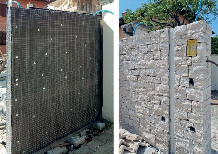 • Nel dubbio, fissare a muro mediante tasselli, la rete metallica ZINCORETE 2,5 e fare poi una leggera rasatura con colla speciale B&B.