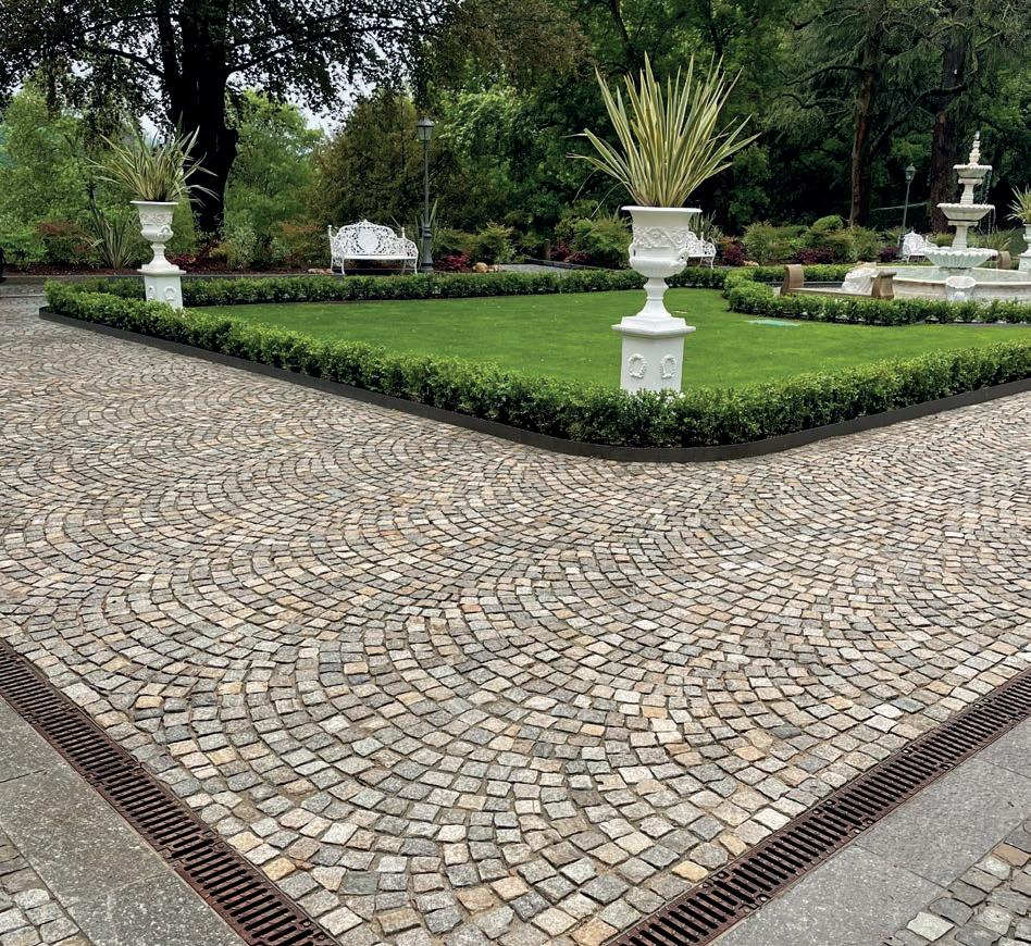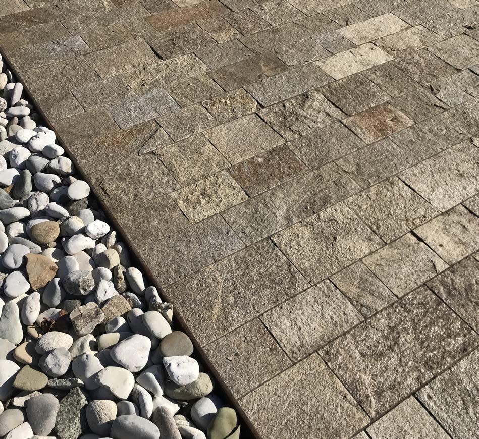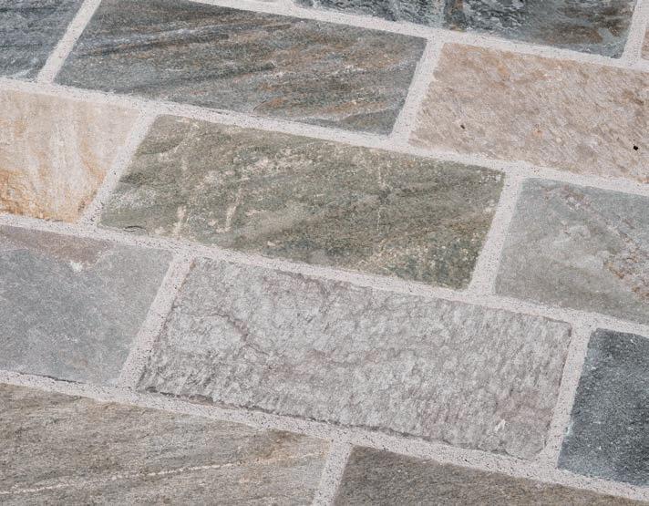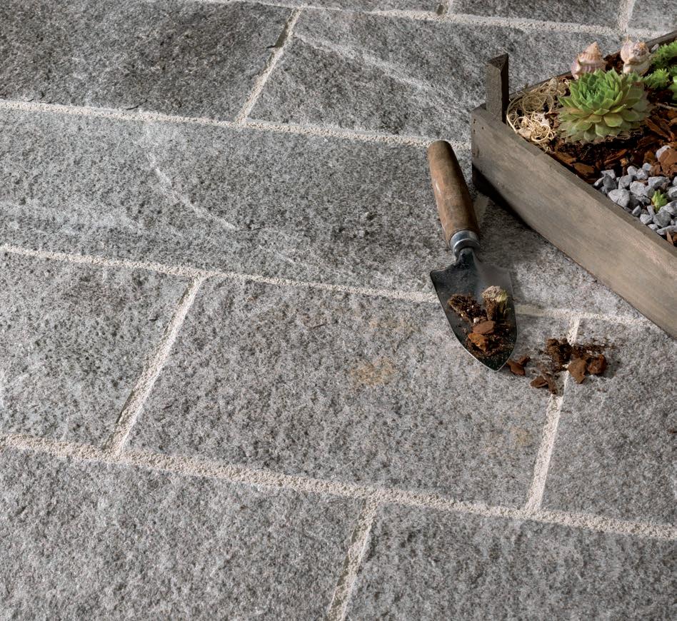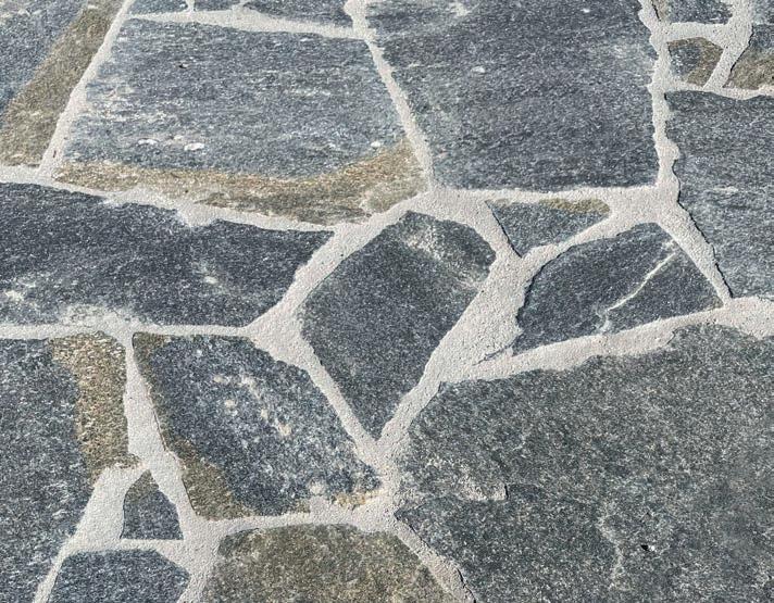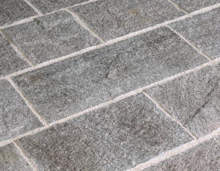 • Tutte le pietre a “posa incerta” possono essere posate con la fuga o a secco. Nella preparazione dei confezionamenti, consideriamo sempre una fuga di circa 20 mm. Nel caso di posa a secco, è necessario calcolare circa il 15% in più di materiale.
