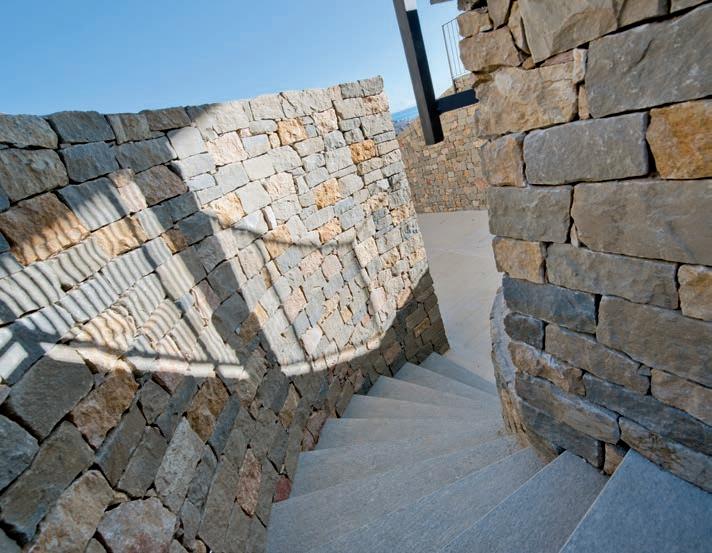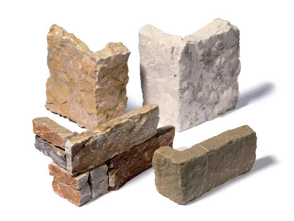 Tutta la gamma di pietre a posa incerta e ad incastro è disponibile anche nel formato angolare. Questo consente un risultato finale impeccabile.
