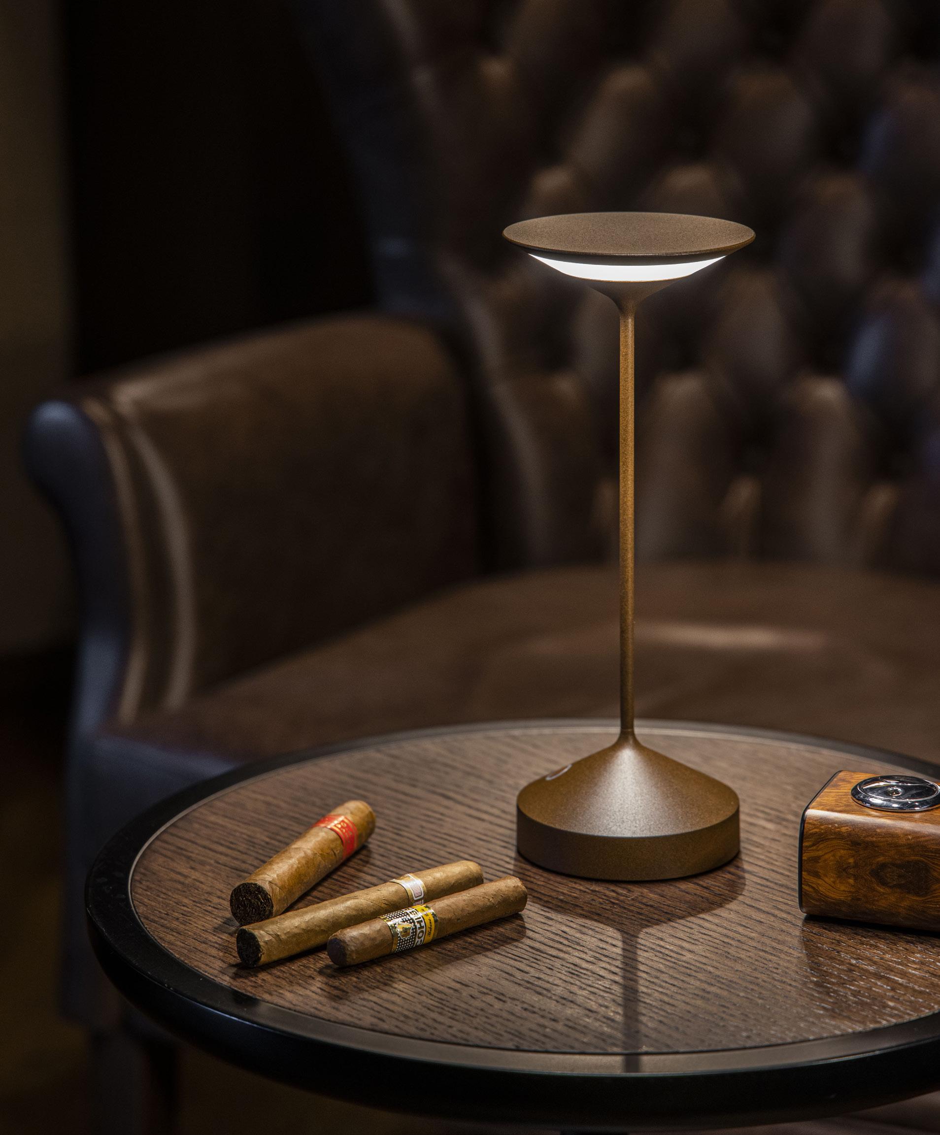 Tempo is a rechargeable LED lamp with warm, adjustable light for refined atmospheres. Its minimalist design features durable, recyclable aluminum and touch-sensitive brightness control.