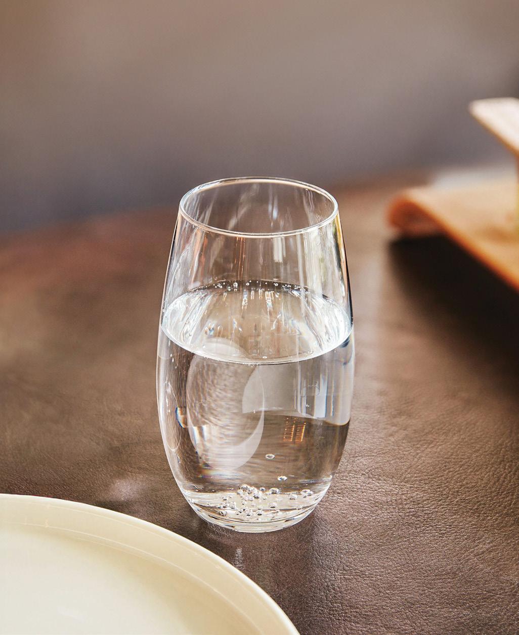 The elegant arched sides of Salto creates a glass that fits perfectly in all hands.