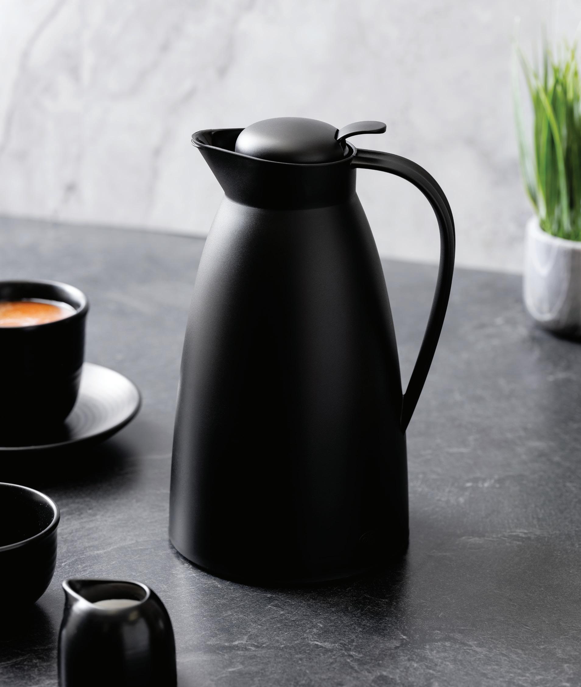 Premium vacuum carafe in a sleek frosted black design adds elegance to beverage service.