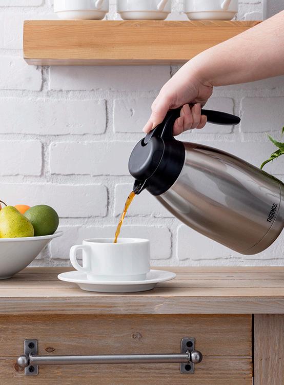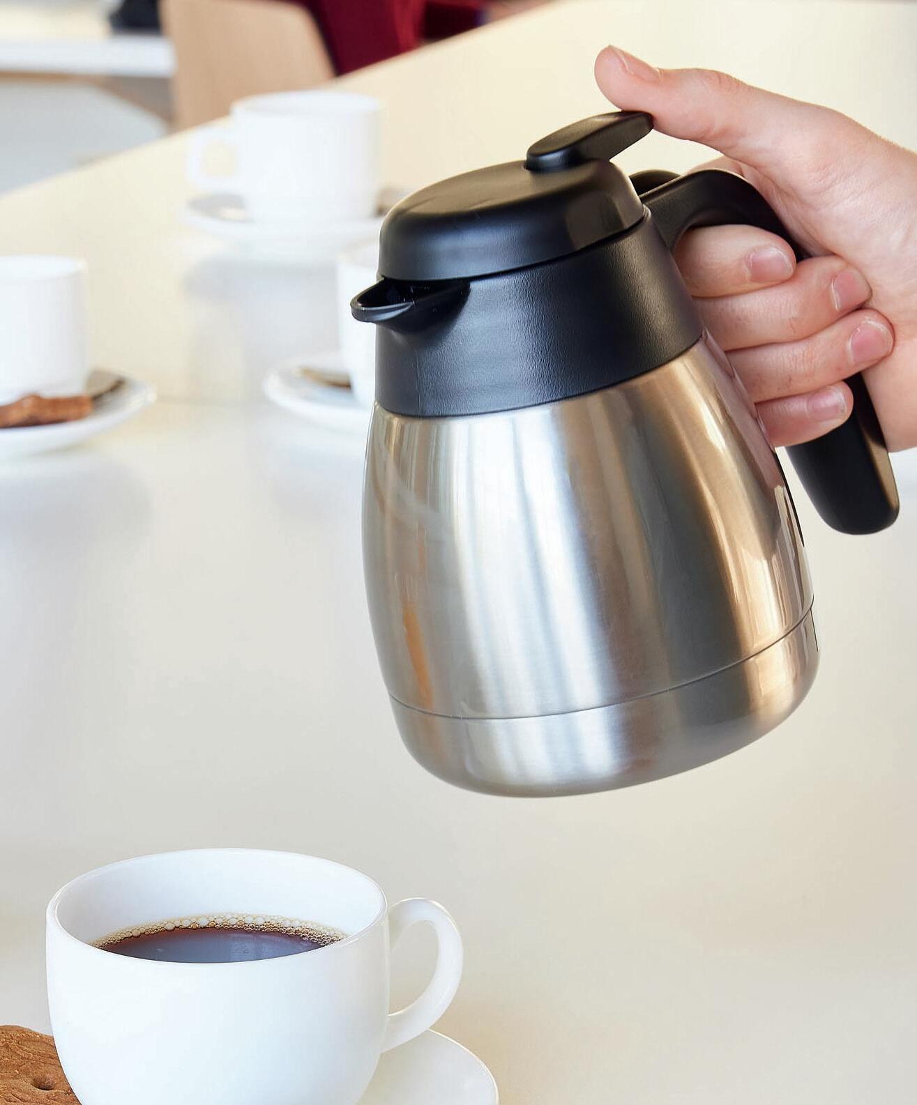 Designed for professional everyday use. Features a lever-operated stopper and a double wall stainless steel body to help keep coffee or tea at the perfect temperature.