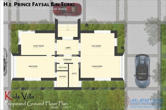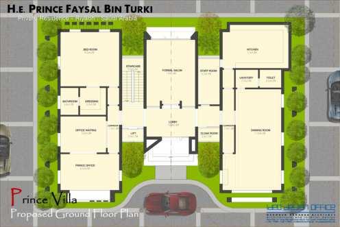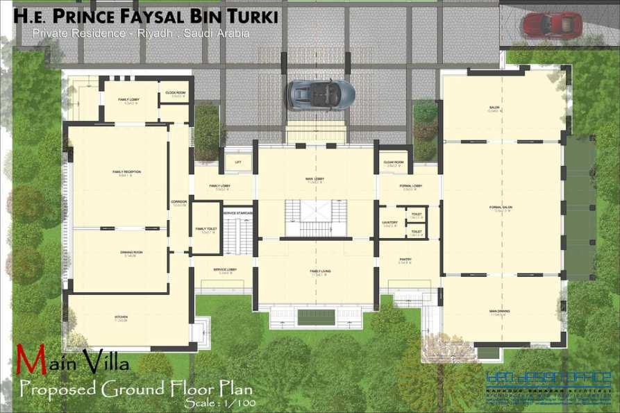 LOCATED IN THE CENTER OF RIYADH, THE PROJECT REFLECTS A CONTEMPORARY ARCHITECTURE WITH THE TOUCH OF MODERNITY IN THE MATERIAL SELECTION, VOLUMETRIC FORM THAT FOLLOW THE CONTEXT AND SURROUNDING OF THE NEW CITY. THE VILLA CONTAIN A BASEMENT FLOOR THAT HOLD MOST OF THE ENTERTAINMENT FACILITIES, WHILE THE GROUND FLOOR SERVE AS A PUBLIC SECTION THAT HOLDS THE MAIN SALON AND DINING AREA FOR THE VISITORS. FIRST FLOOR PLAN WAS DESIGNED AS A PRIVATE ZONE WITH OUTDOOR GARDEN , LINKING THE CIRCULATION BETWEEN EACH FLOOR VERTICALLY WITH A MODERN STAIR DESIGN, FINISHING MATERIAL AND FUNCTION.