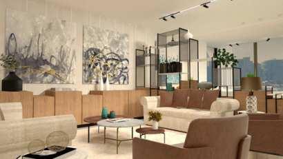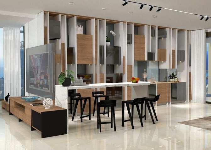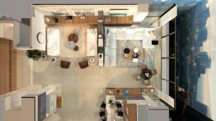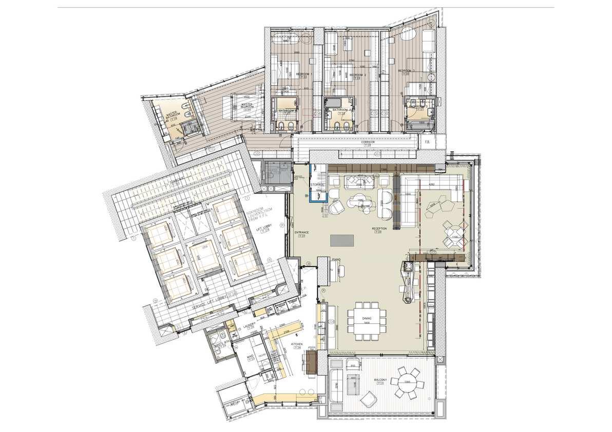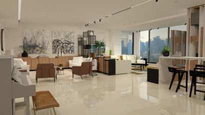THROUGH A UNIQUE ARCHITECTURAL SOLUTION, ALL ASPECTS OF FUNCTIONALITY AND USER COMFORT ARE CAREFULLY CONSIDERED. EXPLORES THE IDEA OF CONNECTION AND FLUIDITY WHEN CIRCLING THROUGH THE APARTMENT. THE MATERIALITY AS A WHOLE HIGHLIGHTS THE COMBINATION OF LIGHT BEIGE TRAVERTINE TILE FLOORS WITH A COMBINATION OF WOODEN PANELS, WHITE MARBLE AND MIRROR , TURNING THE INDOOR ATMOSPHERE TO BE NEUTRAL IN MATERIALS AND COLORS. THIS DESIGN EMPHASIZED THE APARTMENT'S CREATIVITY, INSPIRATION, AND FREEDOM.
