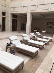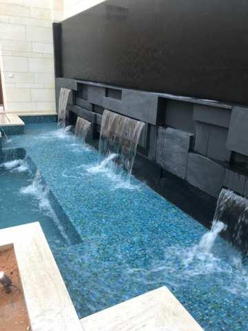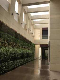 THE COURTYARD IS ENCLOSED BY THE BUILDING ITSELF ON THREE SIDES WHILE IH THE FOURTH WALL, A WATERFALL WALL FEATURE GIVES A SOOTHING EFFECT WITH THE POOL AND INDOOR ENVIRONMENT .
