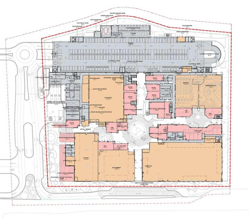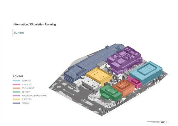 WILL BE A REMARKABLE WORLD CLASS URBAN ENTERTAINMENT AND COMMUNITY FOCUSED DEVELOPMENT. A TOTAL BUILT UP AREA OF 72,000SQM, THE COMPLEX CONTAIN A CENTRAL COMMUNITY SPACE WHICH IS THE HEART OF THE PLAN AND ACTS AS A COURTYARD FOR THE PROJECT GIVING VISUAL ACCESS TO THE BLACK BOX, AMC CINEMAS, SEVEN FEC, AND EDUTAINMENT.AS FOR EXTERNAL FACADE, DIFFERENT MATERIAL WAS USED SUCH AS GRC, PRECAST, ALUMINUM AND WOOD CLADDING IN WHICH IT REFLECTS A CONTRAST AND CREATES AN ICONIC ATTRACTION IN THE HEART OF THE ENTERTAINMENT DESTINATION.