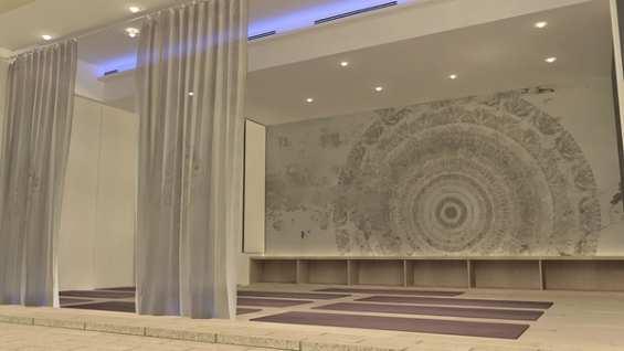 THE CENTER ARE DESIGNED TO OFFER RELAXATION TO USERS THROUGH THEIR PRACTICES AND MATERIAL SPACE. SHADES OF WHITE, CREAM, TAN, AND GREEN HAVE BEEN SHOWN TO CALM THE MIND AND BODY AND FOSTER A SENSE OF DECOMPRESSION.