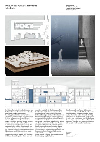 Schnitt B_B somit den Maßstab der Bucht aufgegriffen. 1_200 Der Baukörper bildet nicht nur eine Masterarbeit SS 2016selbstKoko Kato 1613841 Fachgebiet Bauplanung Prof. Walter Nägeli Museum des Wassers in Yokohama bewusste Figur, sondern nimmt durch die Höhenstaffelung in der Gebäudekubatur zum Grünraum und zum Meer hin einen greifbaren, menschlichen Maßstab auf und fügt sich gleichzeitig so in die Umgebung. Die äußere Erscheinung des Gebäudes behält durch die variierenden Größen und Platzierungen der Öffnungen ihr eigene Maßstabslosigkeit bei und erzeugt Spannung. Daher ist es für den Betrachter fast unmöglich, auf den ersten Blick die wahren Dimensionen des Hauses abzulesen. Somit verhüllt es seine wahre Größe und Ausdehnung. In und um das Gebäude gibt es verschiedene Durchwegungsmöglichkeiten.