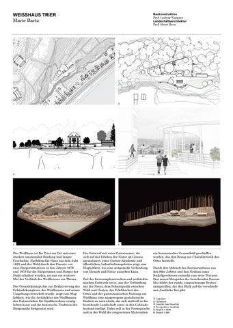 Das Weißhaus ist für Trier ein Ort mit einer starken emotionalen Bindung und langer Geschichte. Nachdem das Haus aus dem Jahr 1823 und der Wald durch den Einsatz von zwei Bürgerinitiativen in den Jahren 1879 und 1979 für die Bürgerinnen und Bürger der Stadt erhalten wurden, ist nun ein weiteres Mal der Verbleib des Weißhauses ein Thema. Das Gesamtkonzept das zur Reaktivierung des Gebäudekomplexes des Weißhauses und seiner Umgebung entwickelt wurde, zeigt eine Möglichkeit, wie die Architektur des Weißhauses das Naturerleben für Stadtbewohner ermöglichen kann und die historische Tradition der Bürgernähe fortgesetzt wird.
