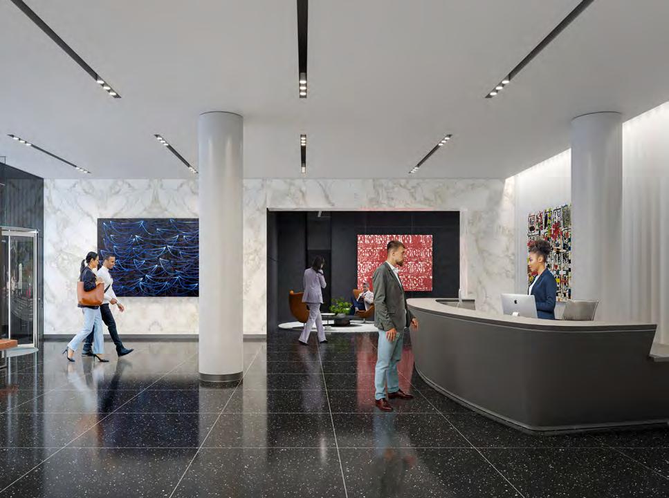 • Updated finishes throughout lobby, reception and elevator lobby, including paint, ceiling, lighting, flooring and furniture.