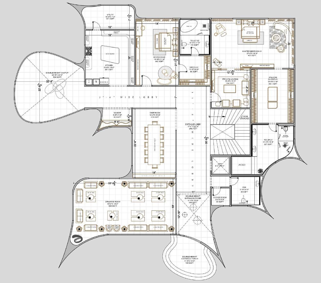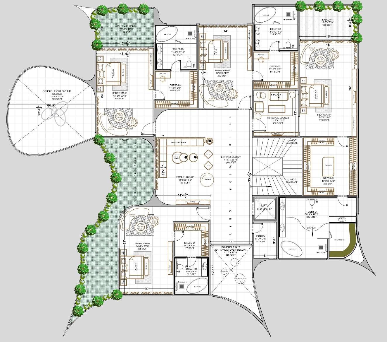 The villa is a meticulously orchestrated architectural composition, seamlessly integrating spatial grandeur with the principles of Vastu Shastra to cultivate harmony, balance, and positive energy flow. Its orientation and zoning adhere to ancient wisdom, ensuring an environment that fosters well-being, prosperity, and spatial equilibrium.