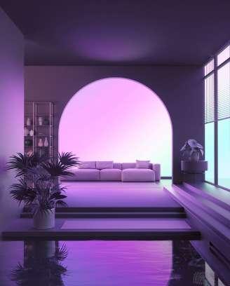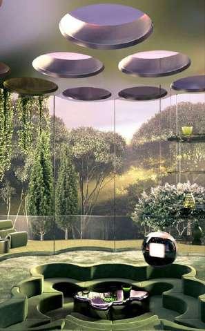 The farmhouse itself emerges as a vision of modern futurism, where architectural purity meets cutting-edge design. Defined by expansive glass facades, the structure dissolves into its surroundings, fostering a dynamic interplay of light, reflections, and nature. These transparent volumes not only enhance the spatial experience but also invite panoramic views of the verdant surroundings, ensuring a constant visual connection to the landscape.