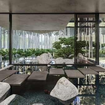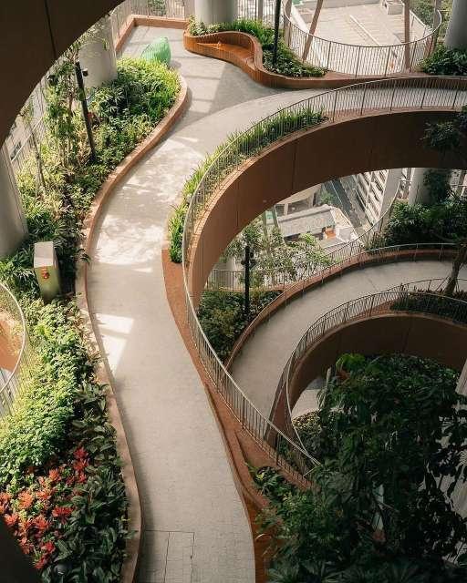 A dedicated gym, designed to promote wellness, shares access to an expansive green terrace. This outdoor retreat, adorned with lush landscaping, offers an immersive experience of nature, blurring the boundaries between built form and the natural environment.w