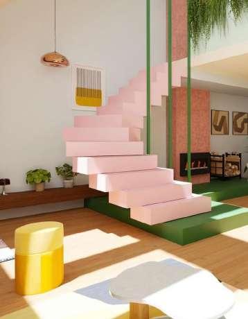 The expansive drawing room, framed by panoramic glass, offers an uninterrupted view of the shimmering swimming pool, blurring the boundary between indoor luxury and outdoor serenity. At the core of the design, a sculptural perspective staircase rises with architectural finesse, serving as both a functional and artistic centerpiece.
