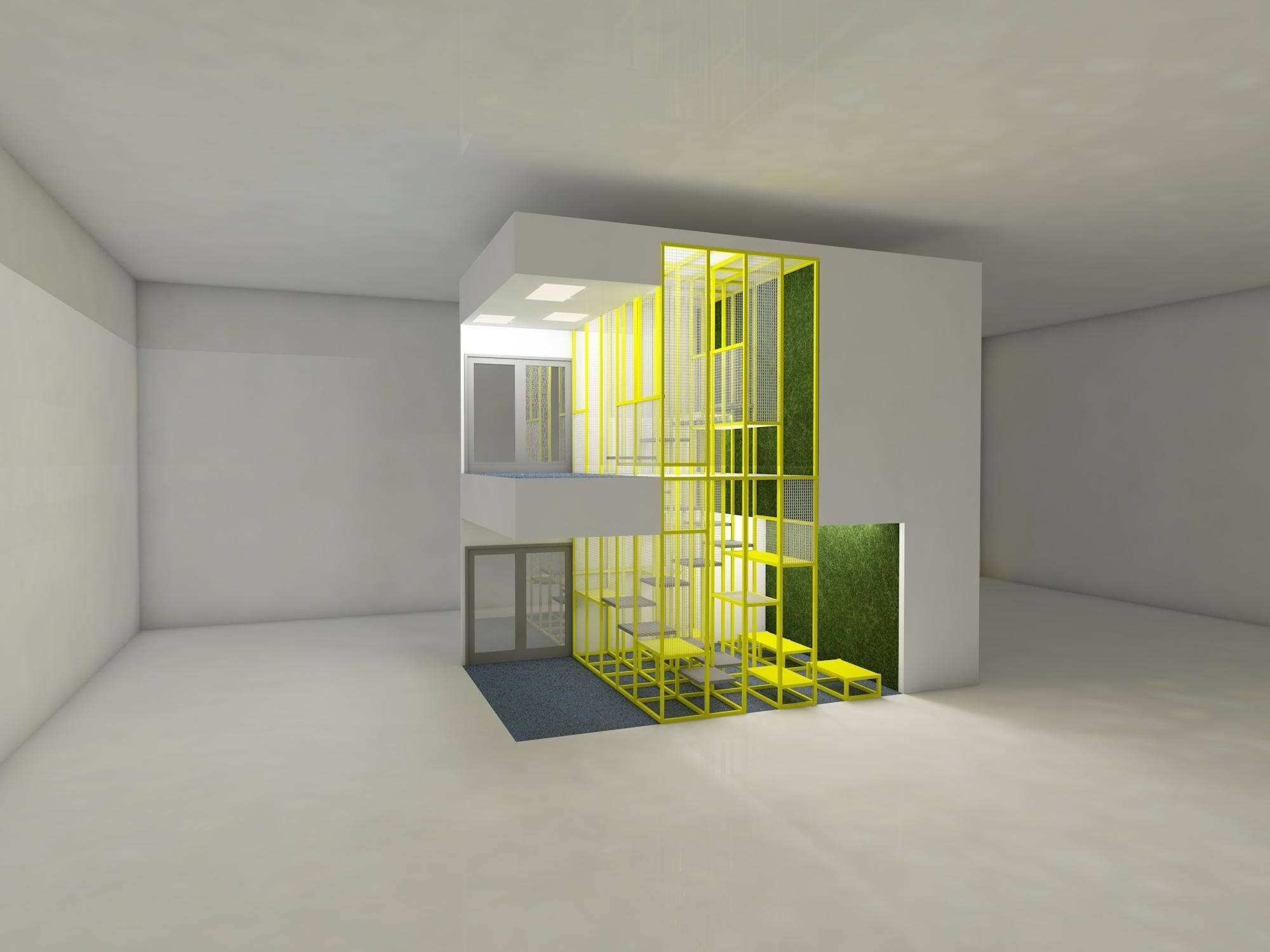 Gypsum plaster board, Plywood, Oak timber, CLT, Polymer cement coating & Moss grass green.