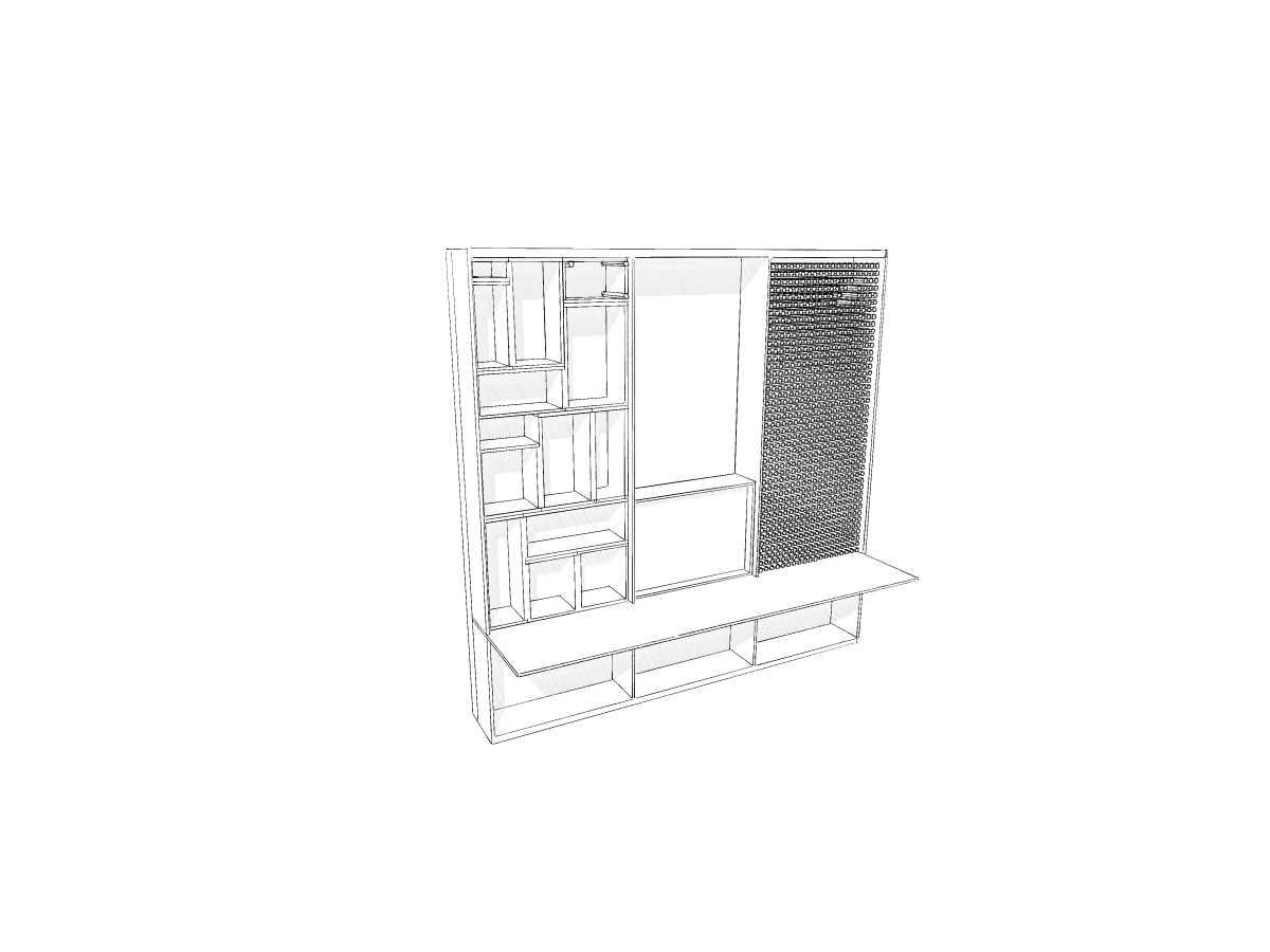 My concept is to design a multi-functional desk and keep it simple for the users and give them the chance to redesign the space to fit their needs so with this dynamic desk all the users will have the chance to change the design as they want and this desk is suitable for architects, artists, designers and other people who have a lot ofthingstostoresoitisa very simple desk which can be used by anyone and this simplicity comes from many things first is the material which is wood as we spend a lot of times working on the desk so it should be easy to clean and very easy to fix and easy to disassembles or assemble andtheneasytomove it from place to another. No hinges were used only wood joints to make it cheaper.