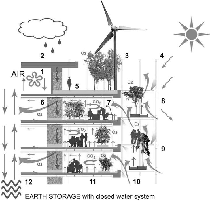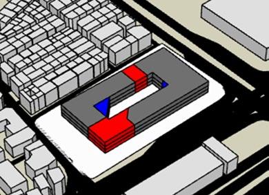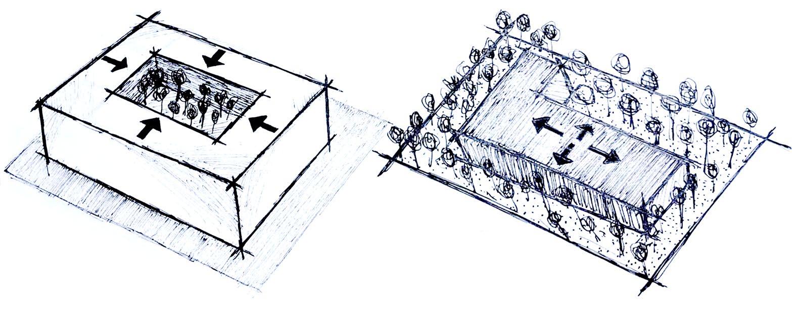 Physical built area surrounded by green spaces and create transparency to open areas in the surroundings